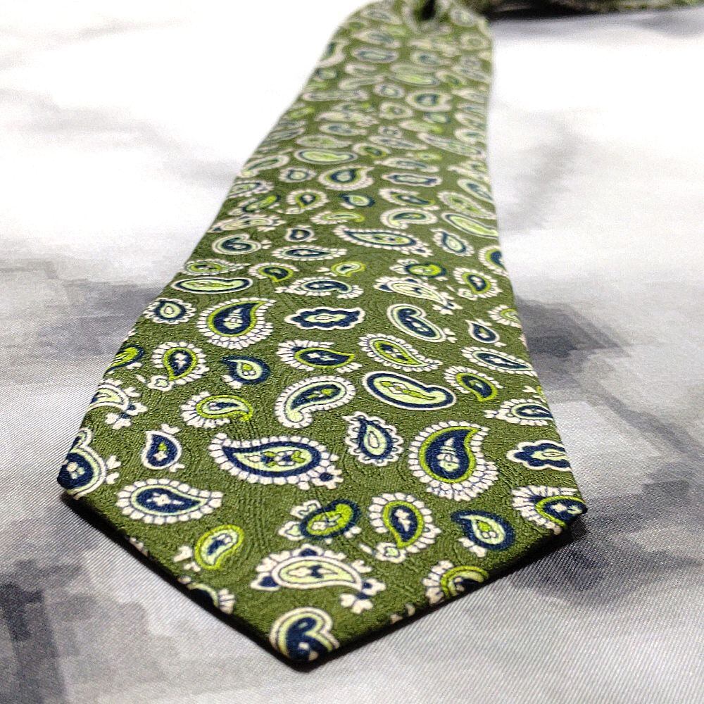 フォルセット FORSET 美品 新品未使用タグ付 微光沢 ネクタイ シルク100% ペイズリー柄 緑系 グリーン系 M-009028