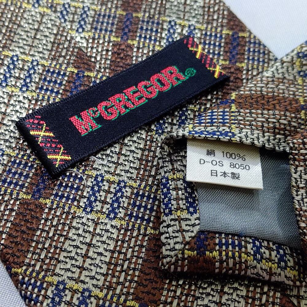 マクレガー マックレガー McGREGOR 良品 微光沢 ネクタイ 日本製 シルク100% チェック柄 茶系 ブラウン系 L-009032