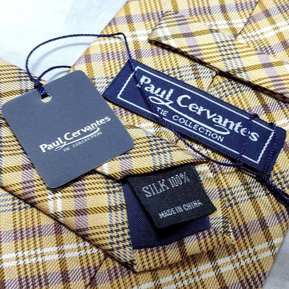 Paul Cervantes 美品 新品未使用タグ付 微光沢 ネクタイ シルク100% チェック柄 ミックス L-009036