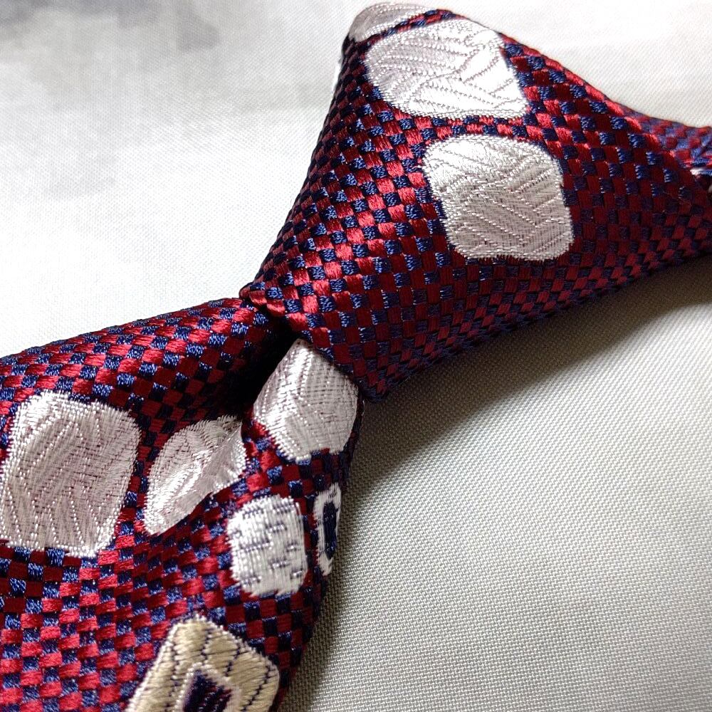特選 嵯峨野 美品 新品未使用帯タグ付 微光沢 ネクタイ パターン柄 ワインレッド系 赤系 L-009039