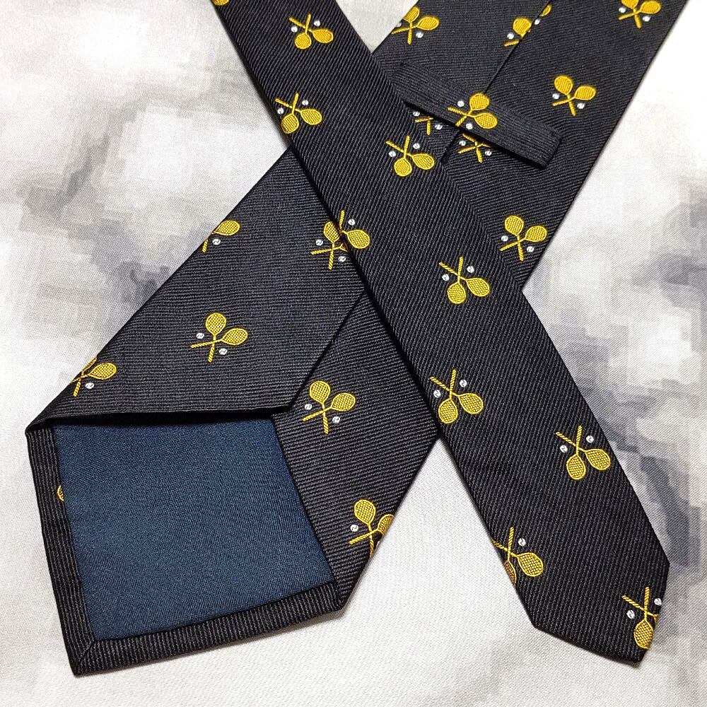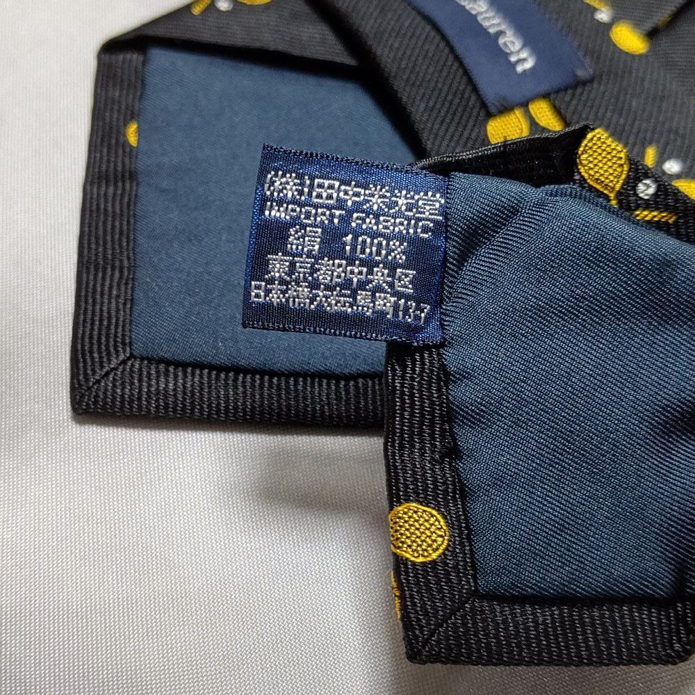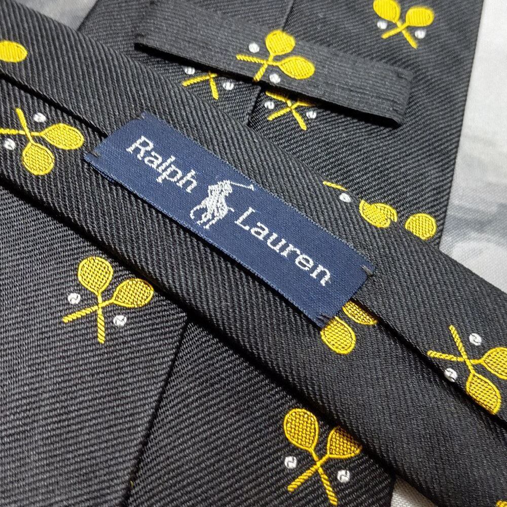 ラルフローレン RALPH LAUREN 良品 微光沢 ネクタイ テニス ラケット ボール スポーツ 黒系 ブラック系 M-009049