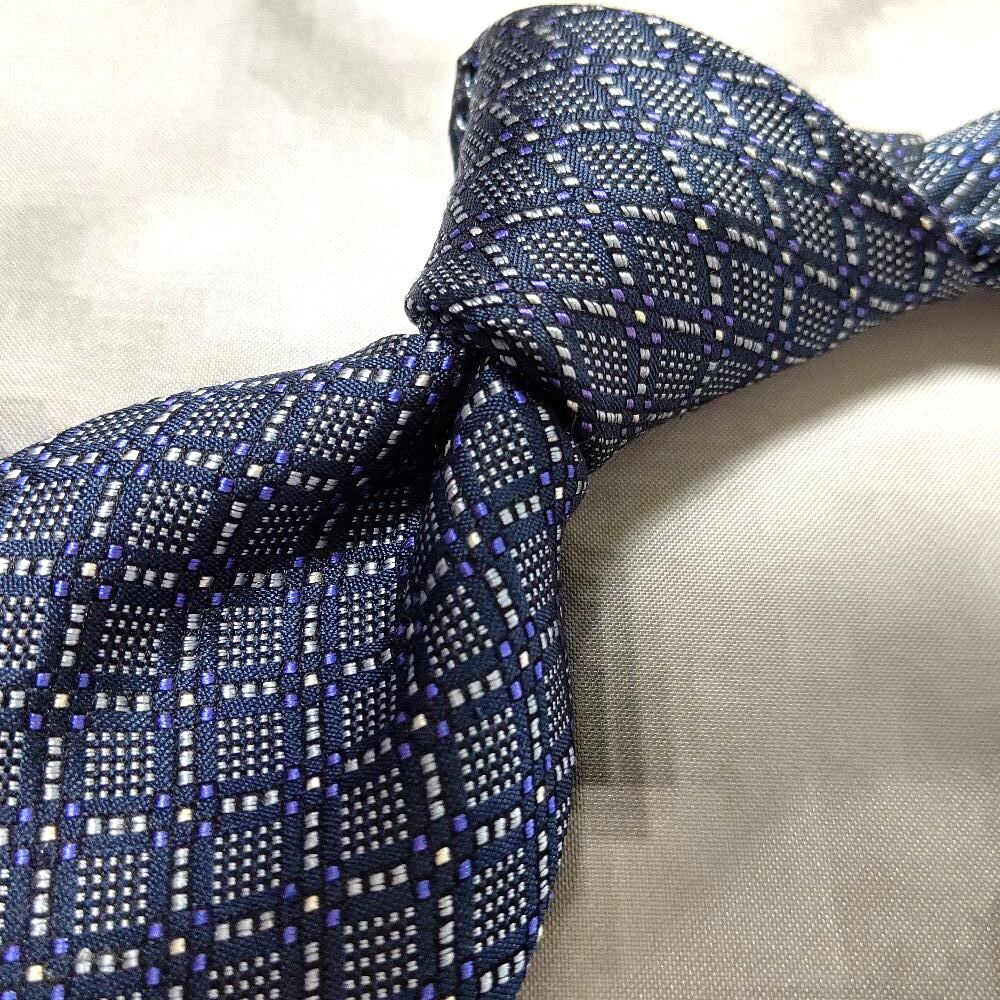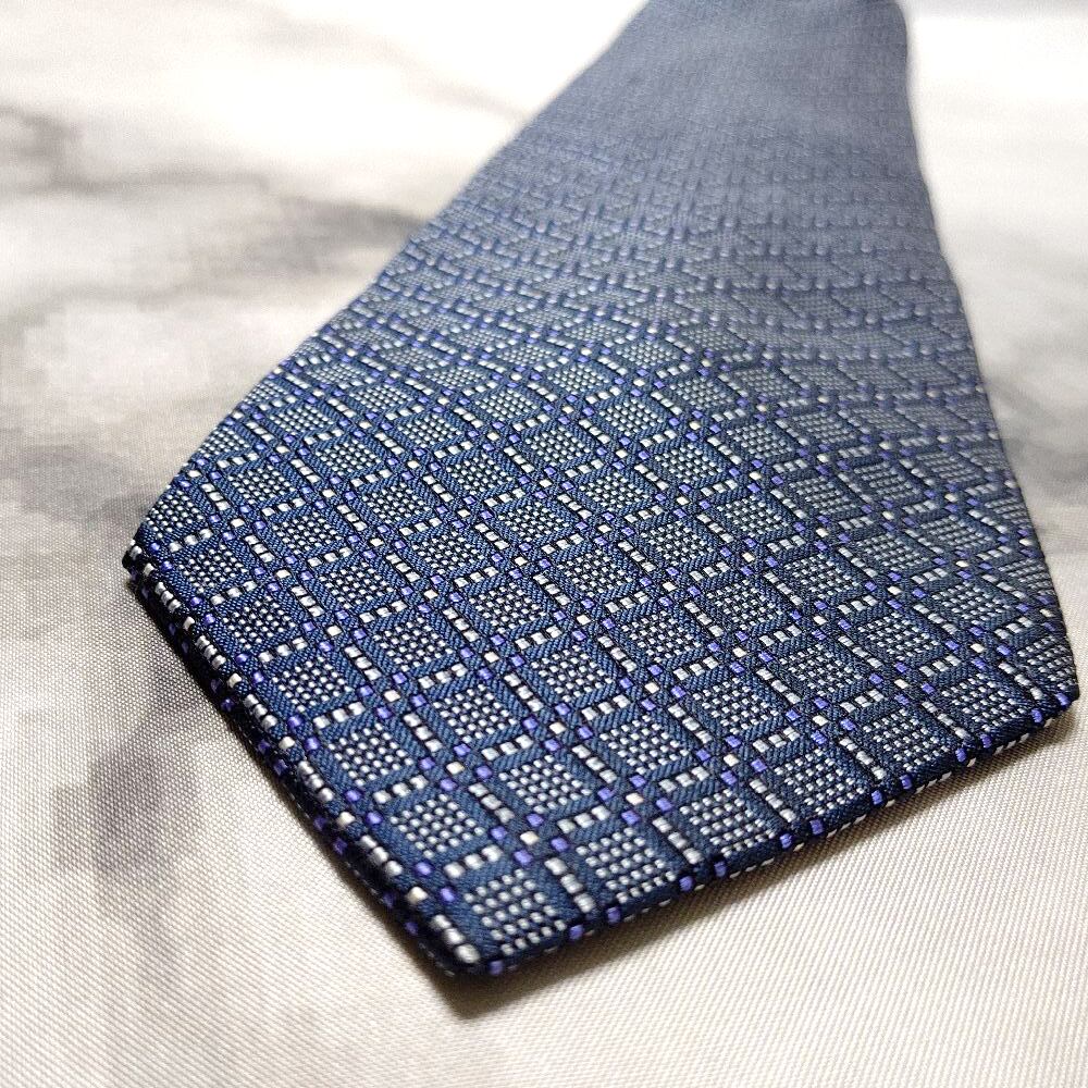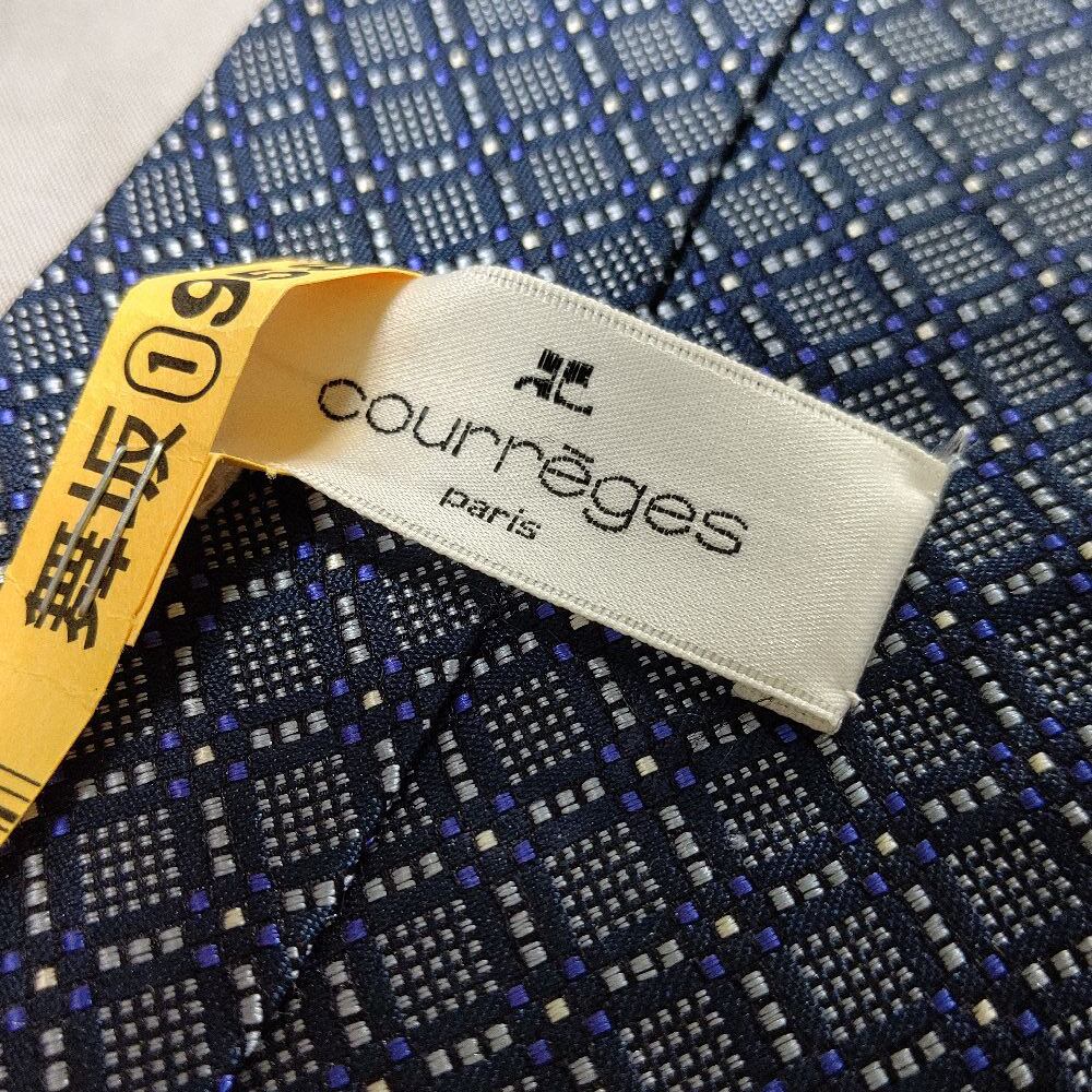 クレージュ courreges 良品 クリーニング済 微光沢 ネクタイ 日本製 シルク100% パターン柄 グレー系 M-009059