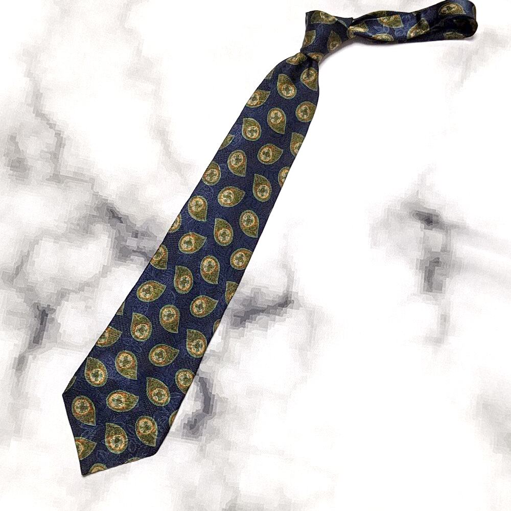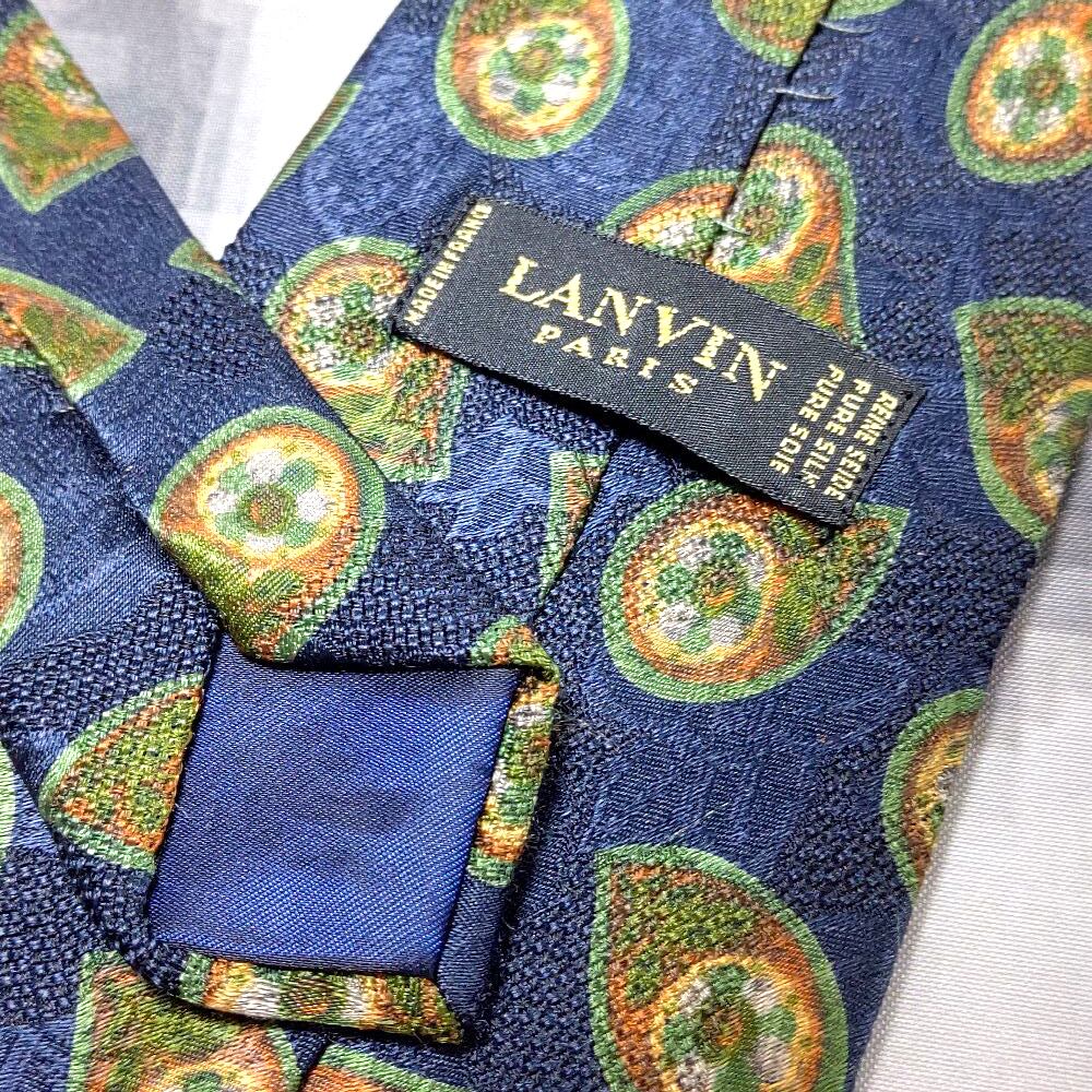 ランバン LANVIN 良品 微光沢 ネクタイ フランス製 シルク100% パターン柄 濃紺系 ネイビー系 M-009063