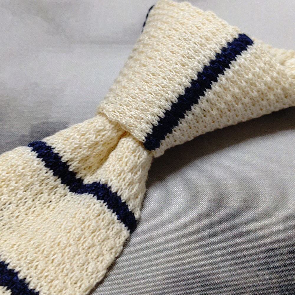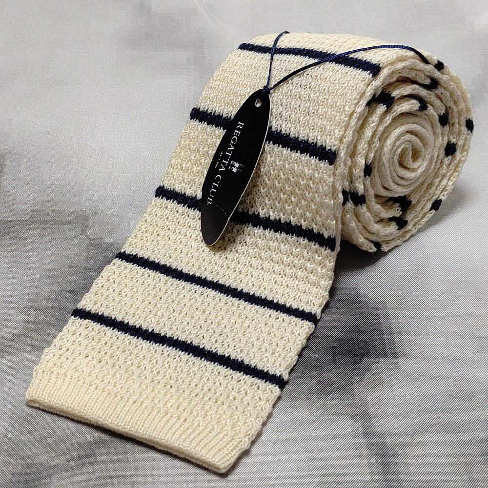 レガッタ クラブ REGATTA CLUB 美品 新品未使用タグ付 微光沢 ネクタイ スクエア ニット タイ ボーダー柄 L-009070