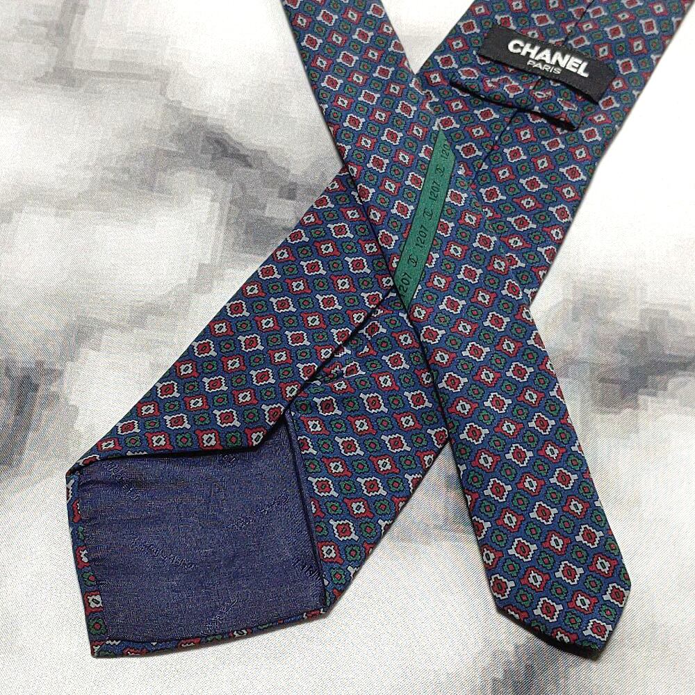 シャネル CHANEL 良品 微光沢 ネクタイ イタリア製 シルク100% パターン柄 ミックス L-009081