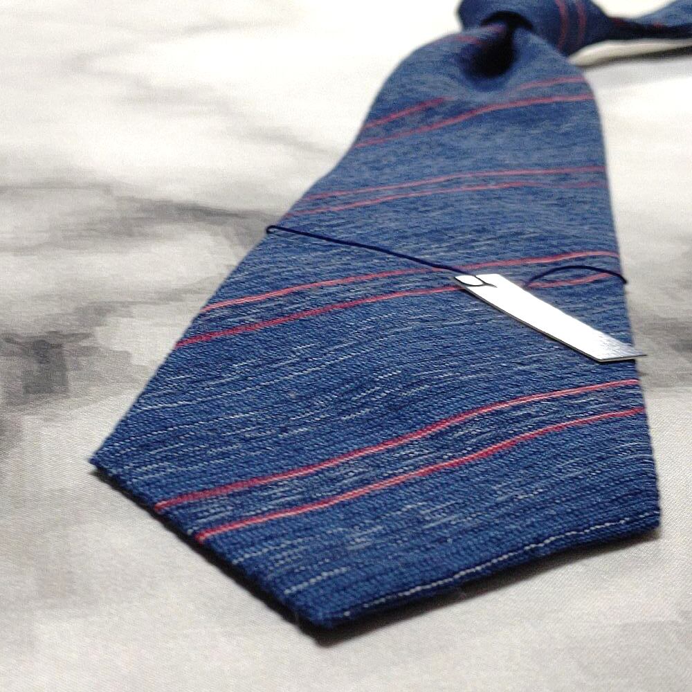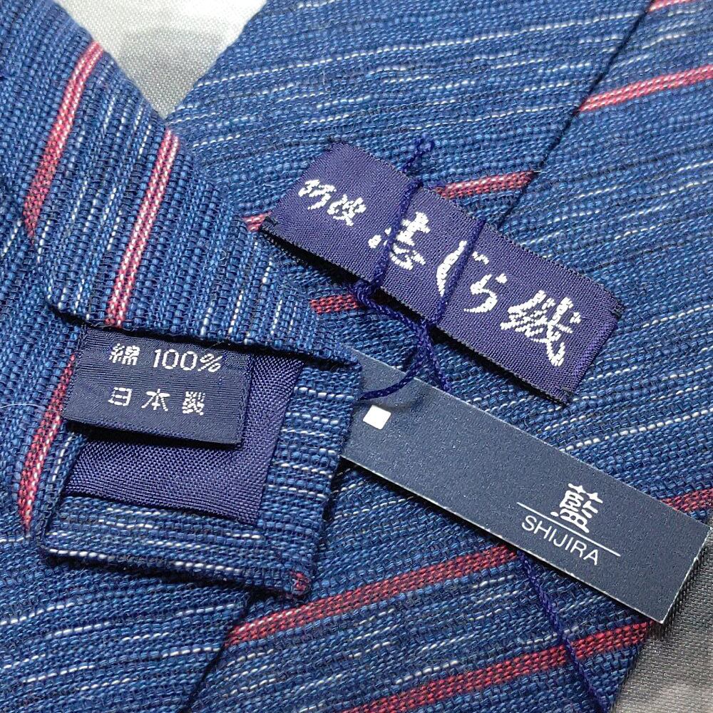 阿波 志じら織 美品 新品未使用タグ付 微光沢 ネクタイ 斜めストライプ レジメンタル 濃紺系 ネイビー系 L-009084