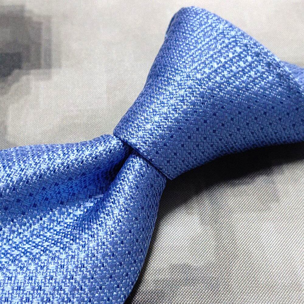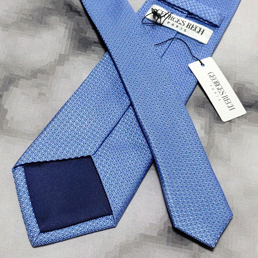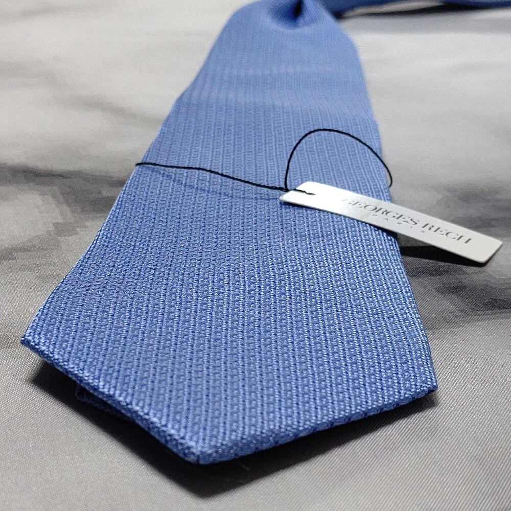 ジョルジュ レッシュ GEORGES RECH 美品 新品未使用タグ付 微光沢 ネクタイ シルク100% 青系 ブルー系 L-009085
