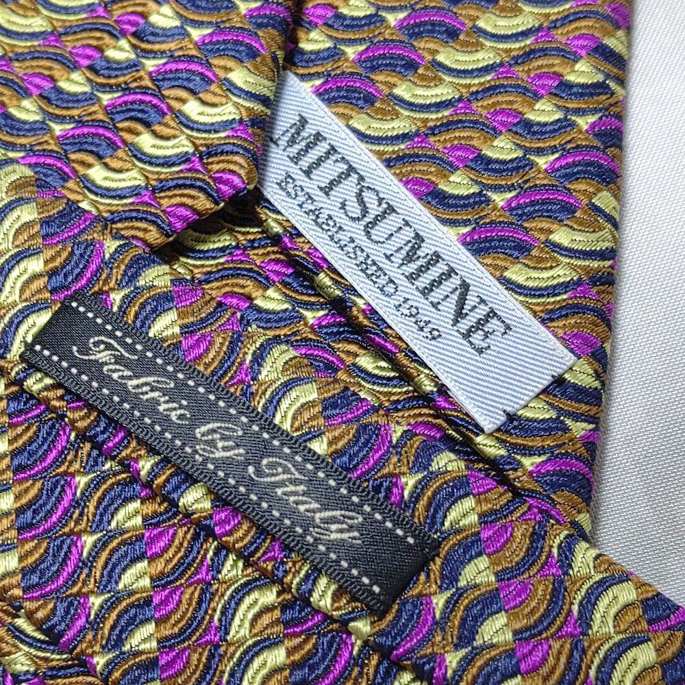 ミツミネ Mitsumine 美品 微光沢 ネクタイ シルク100% パターン柄 ミックス L-009087