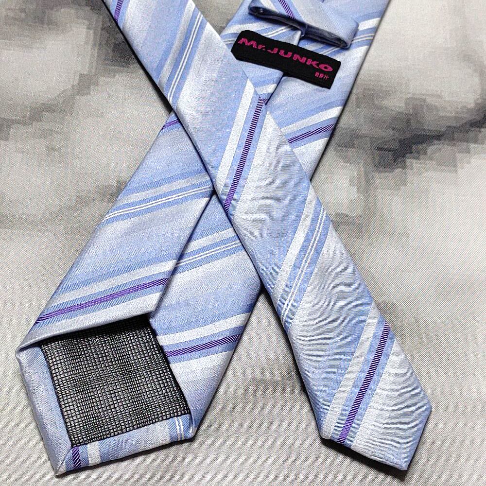 ミスタージュンコ Mr.JUNKO 美品 未使用品 微光沢 ネクタイ 斜めストライプ ナロータイ 青系 ブルー系 L-009088