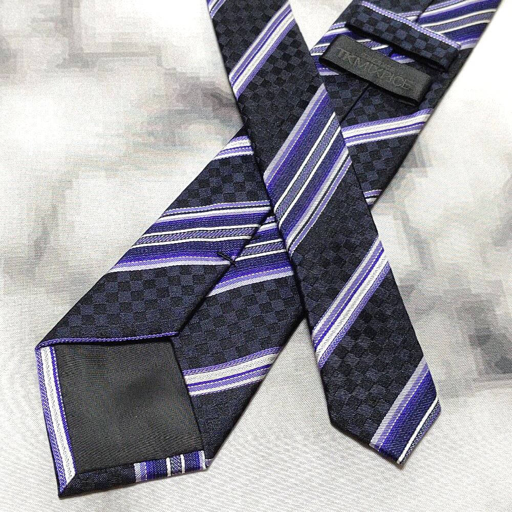タケオキクチ TAKEO KIKUCHI THE SHOP TK MIXPICE 美品 未使用品 微光沢 ネクタイ ストライプ 濃紺系 ネイビー系 M-009102
