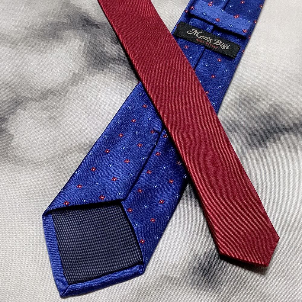 メンズビギ MEN'S BIGI 美品 微光沢 ネクタイ 斜めストライプ レジメンタル 切替 ナロータイ ミックス M-009103