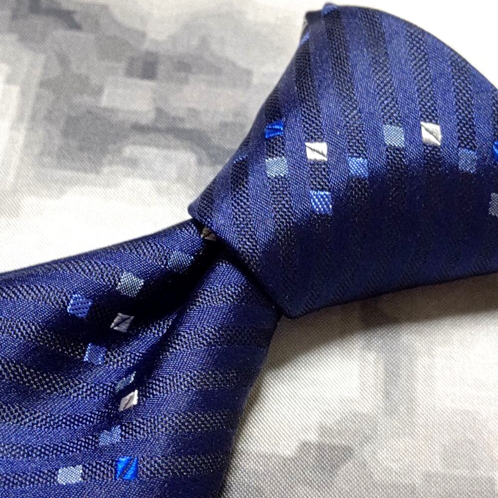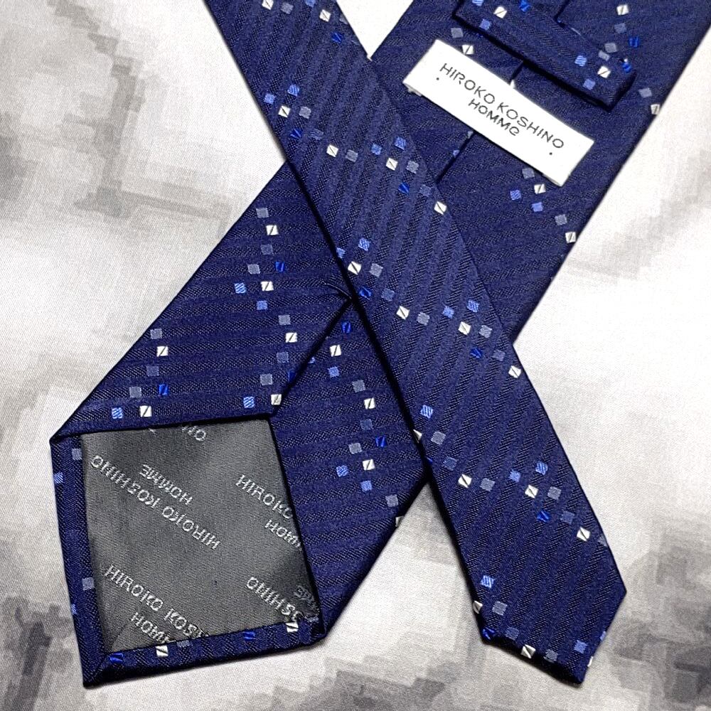 ヒロココシノ HIROKO KOSHINO 美品 微光沢 ネクタイ 斜めストライプ レジメンタル 濃紺系 ネイビー系 M-009115