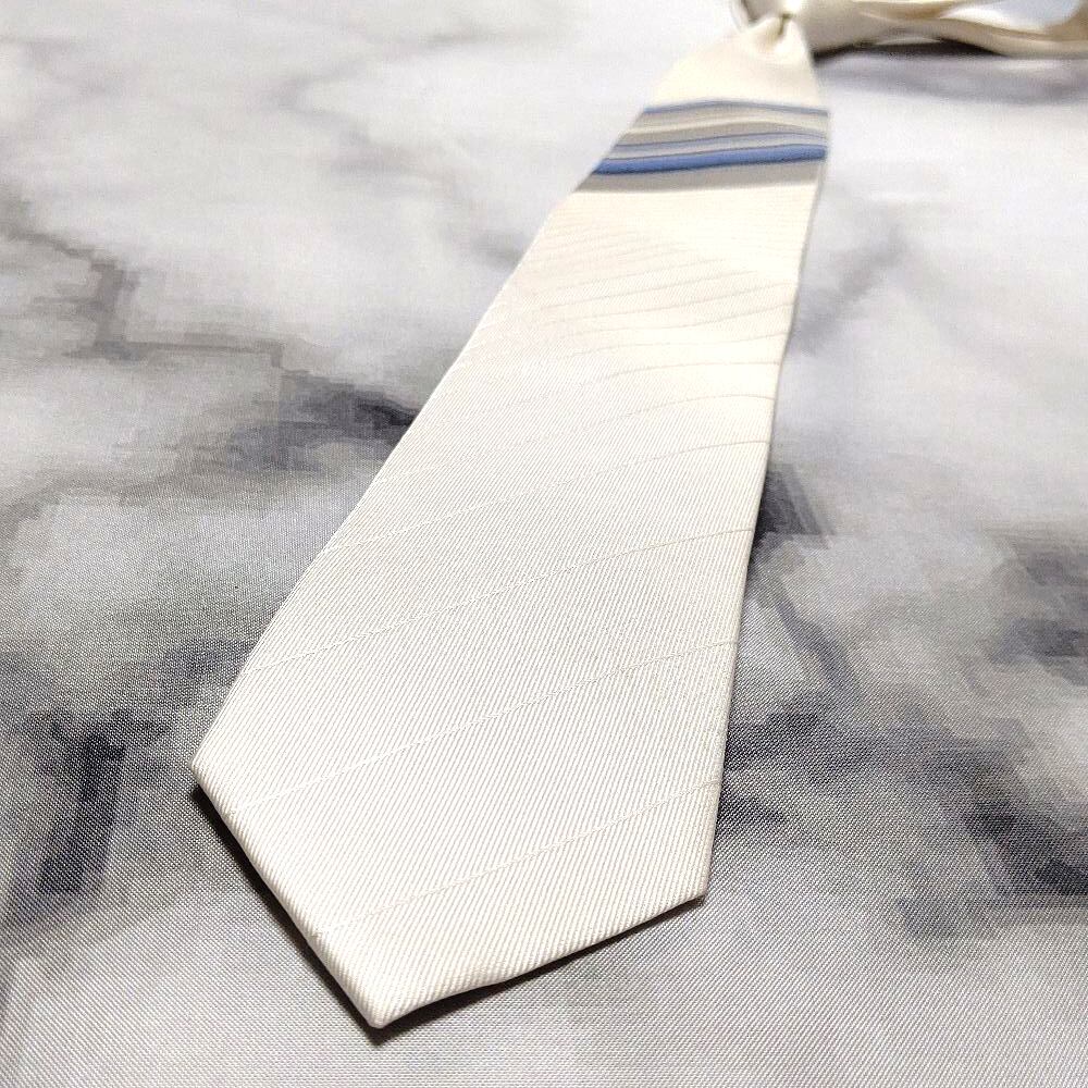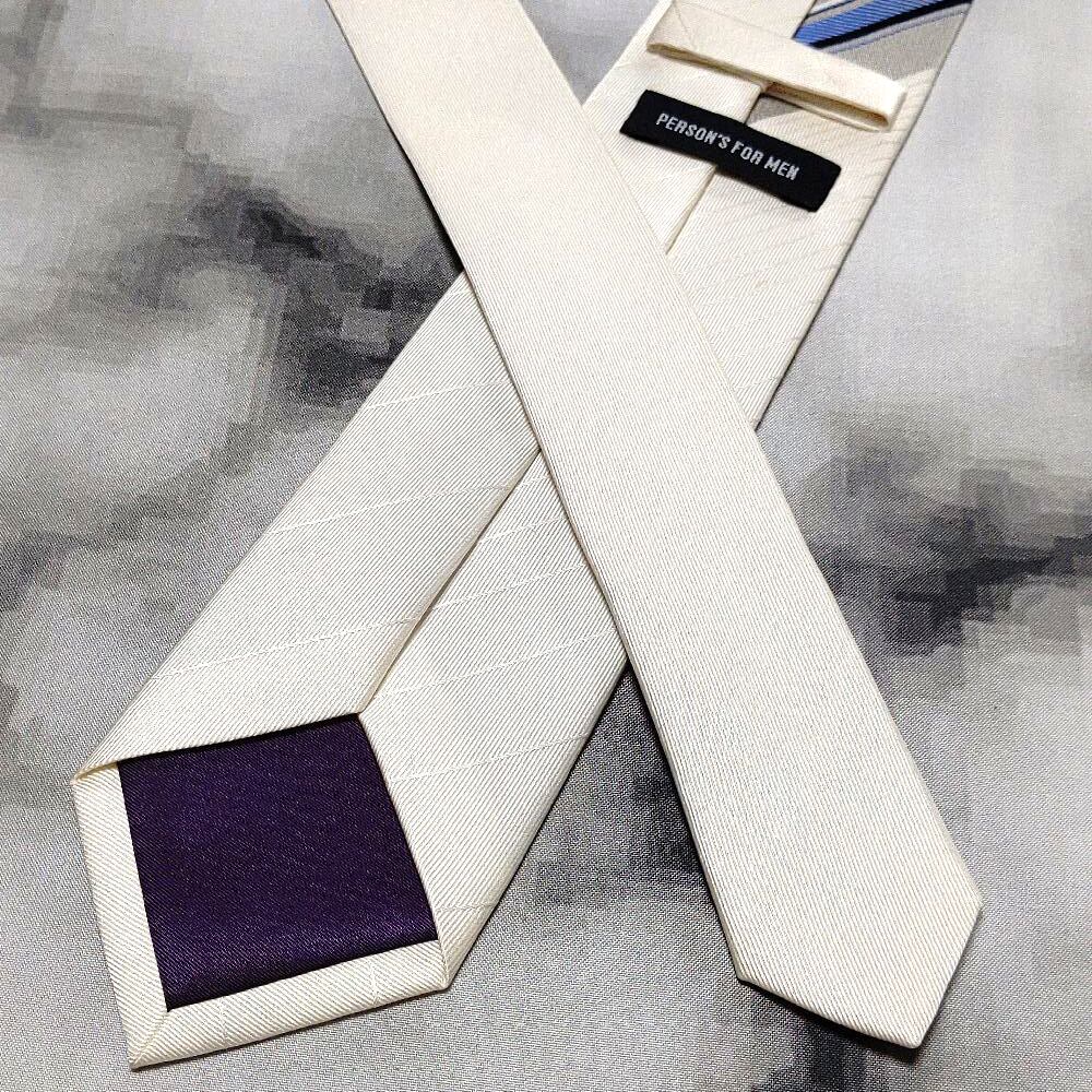 パーソンズフォーメン PERSON'S FOR MEN 美品 微光沢 ネクタイ シルク100% 斜めストライプ レジメンタル M-009122