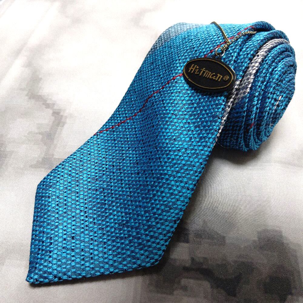 M 美品 新品未使用タグ付 微光沢 ネクタイ ポリエステル100% 斜めストライプ レジメンタル 青系 ブルー系 M-009124