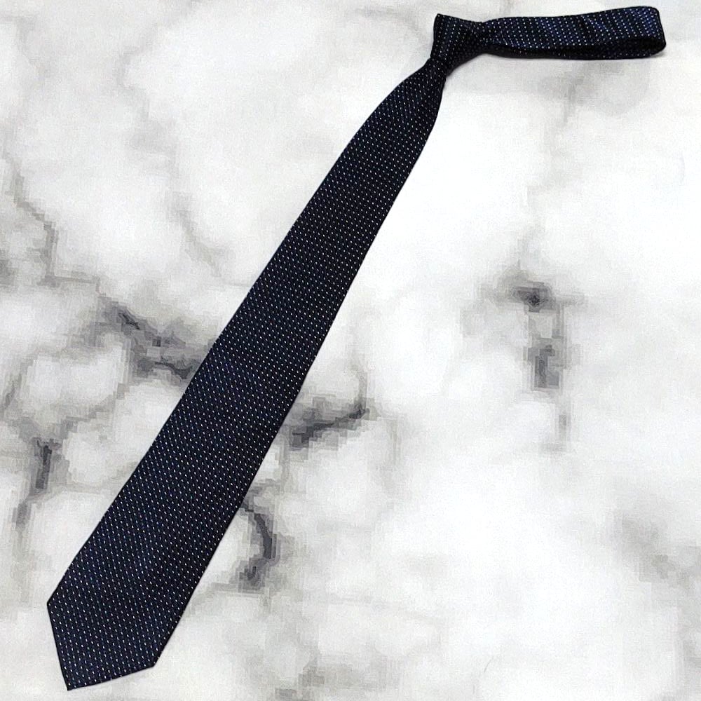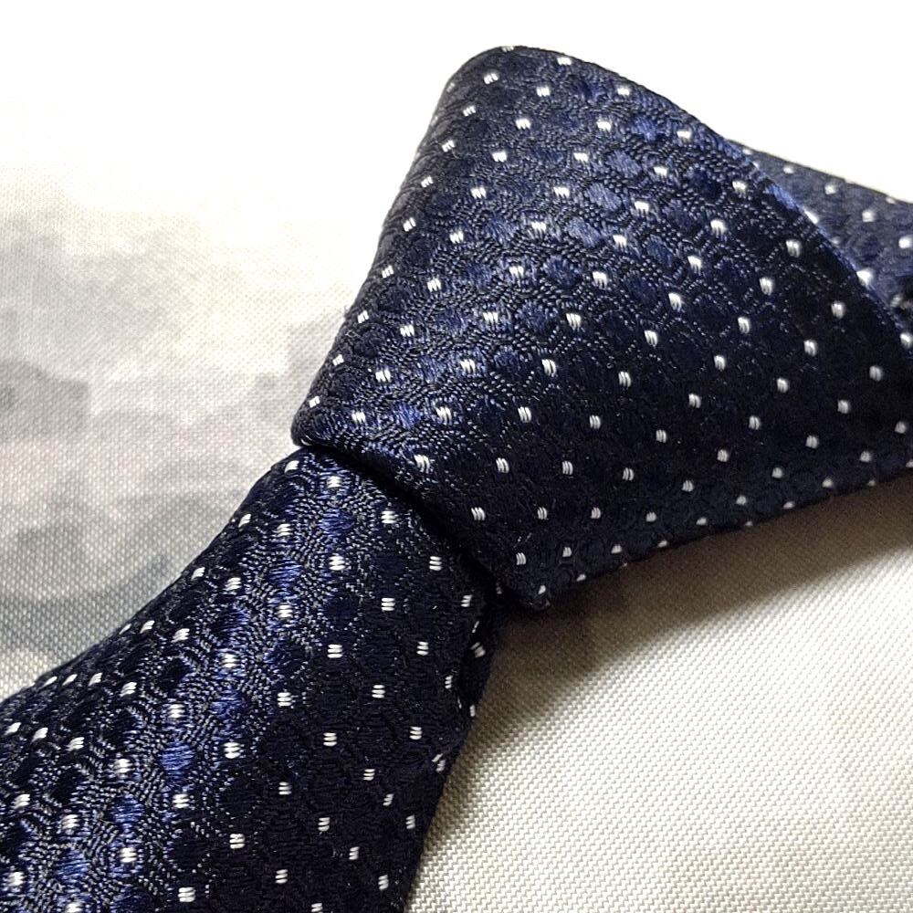 ミチコロンドンコシノ MICHIKO LONDON KOSHINO 良品 微光沢 ネクタイ シルクドット柄 濃紺系 ネイビー系 M-009129