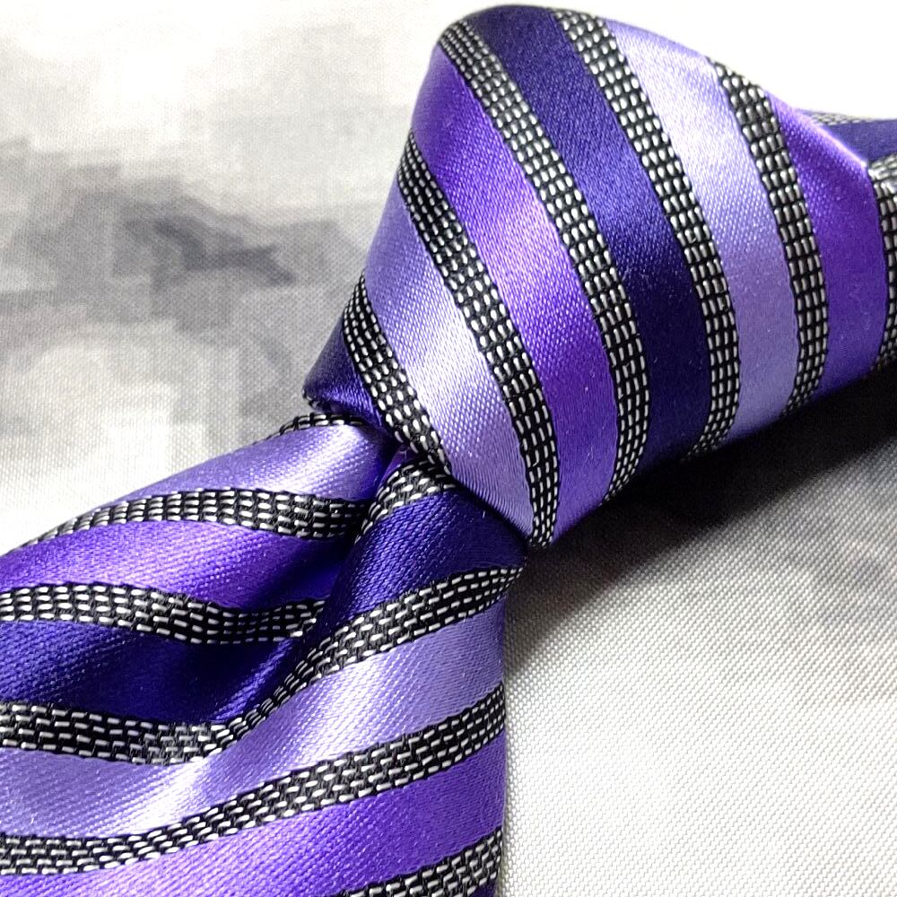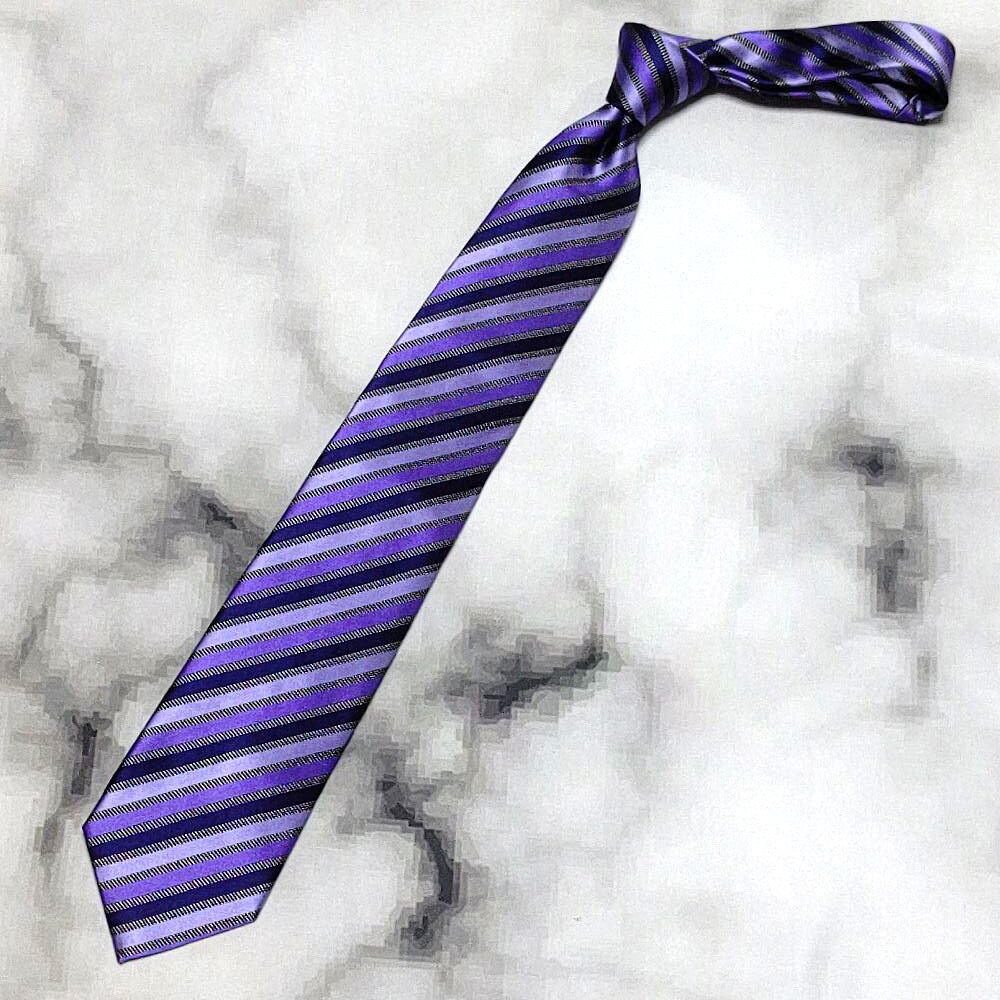タケオキクチ ミクスパイス TAKEO KIKUCHI THE SHOP TK MIXPICE 美品 微光沢 ネクタイ ストライプ 濃紺系 ネイビー系 M-009132
