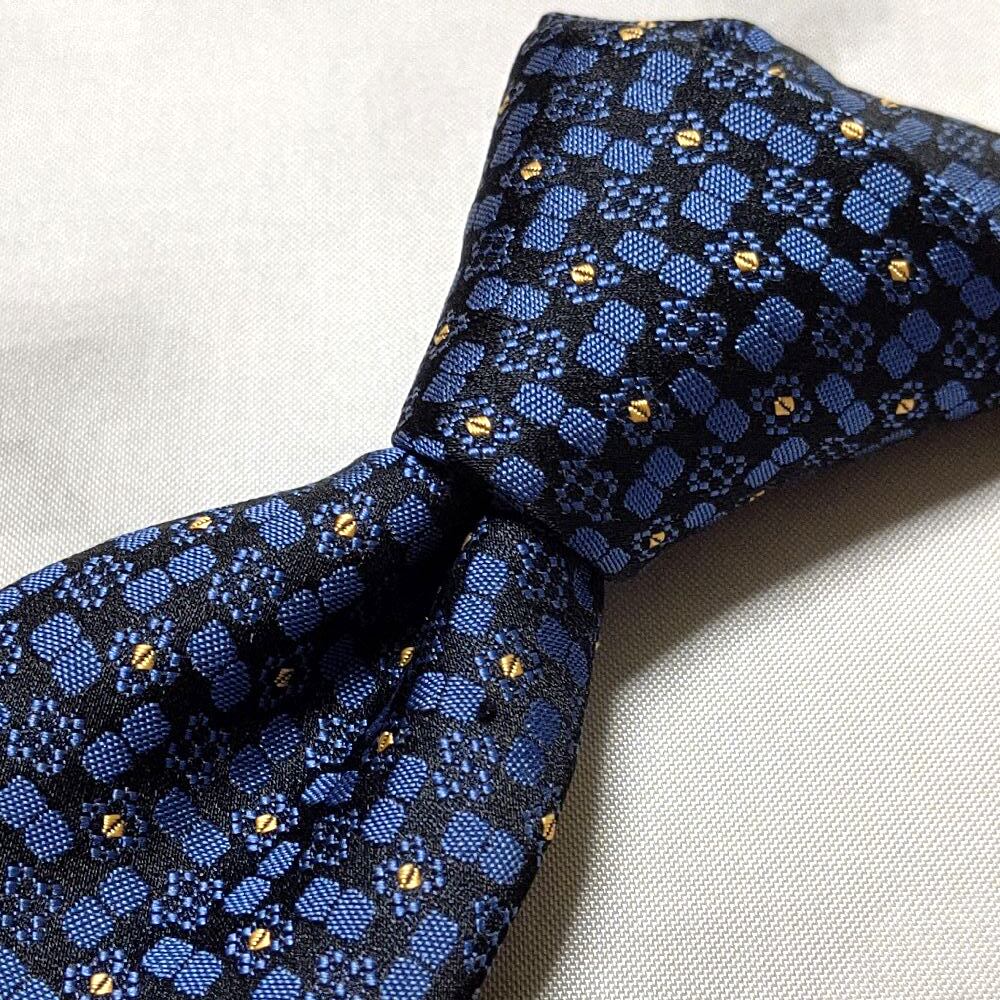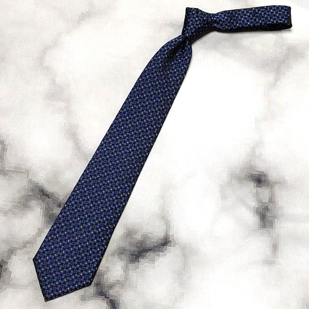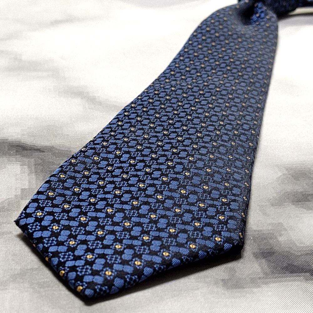 ジュンアシダ Jun Ashida 美品 未使用品 微光沢 ネクタイ シルク100% パターン柄 濃紺系 ネイビー系 N-009139