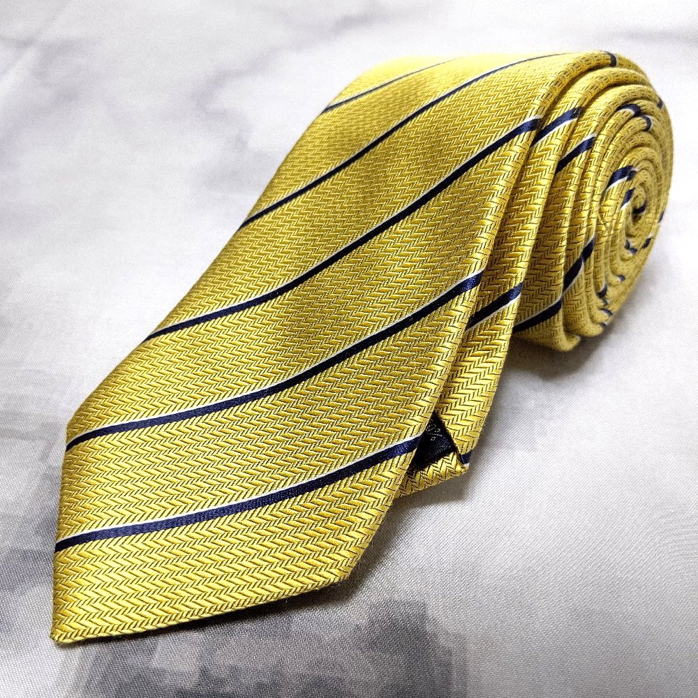 ニューヨーカー NEWYORKER 良品 微光沢 ネクタイ シルク100% 斜めストライプ レジメンタル 黄系 イエロー系 N-009143
