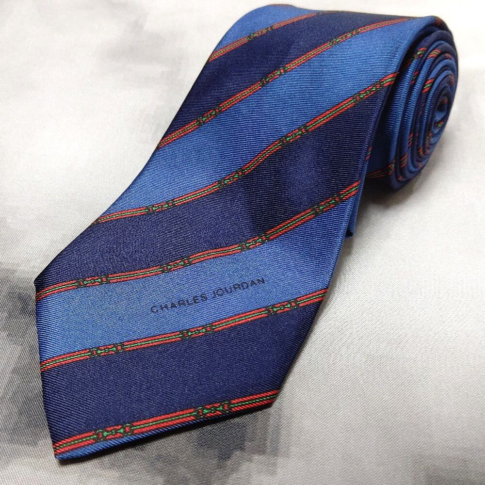 シャルルジョルダン CHARLES JOURDAN 美品 微光沢 ネクタイ 斜めストライプ レジメンタル ミックス N-009148
