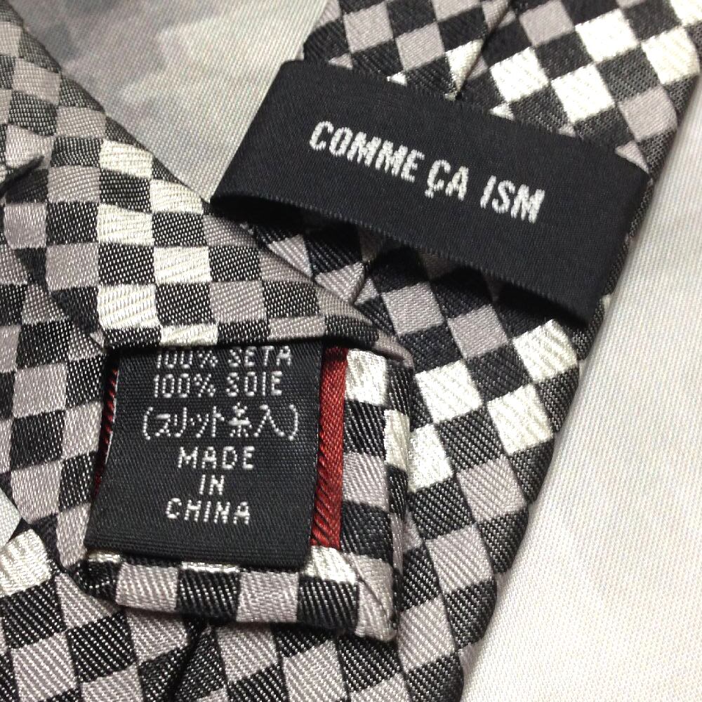 コムサイズム COMME CA ISM 美品 未使用品 微光沢 ネクタイ ブロック 斜めストライプ柄 ナロータイ N-009151