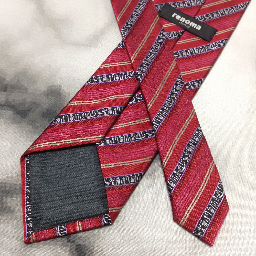 レノマ renoma 良品 微光沢 ネクタイ 日本製 シルク100% 斜めストライプ レジメンタル レッド系 赤系 N-009167