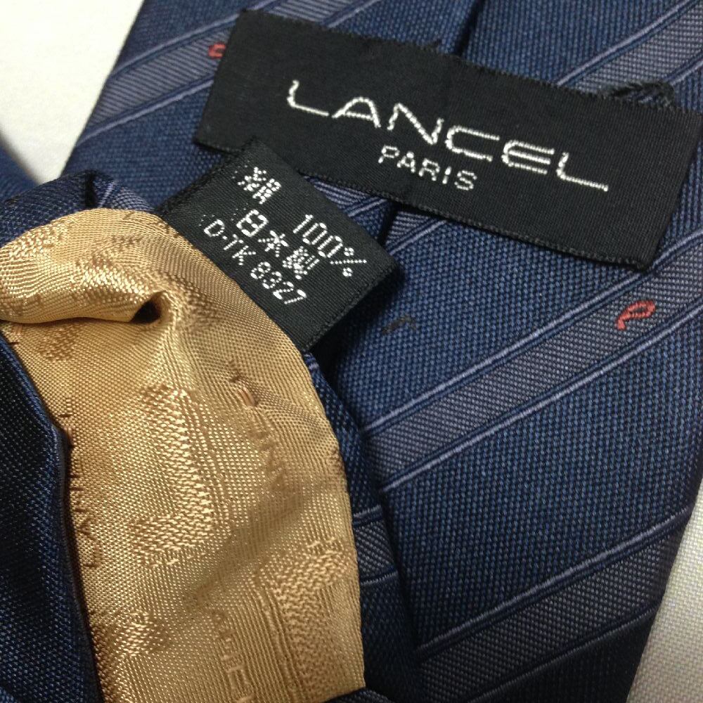 ランセル LANCEL 美品 未使用品 微光沢 ネクタイ 斜めストライプ レジメンタル 濃紺系 ネイビー系 N-009169