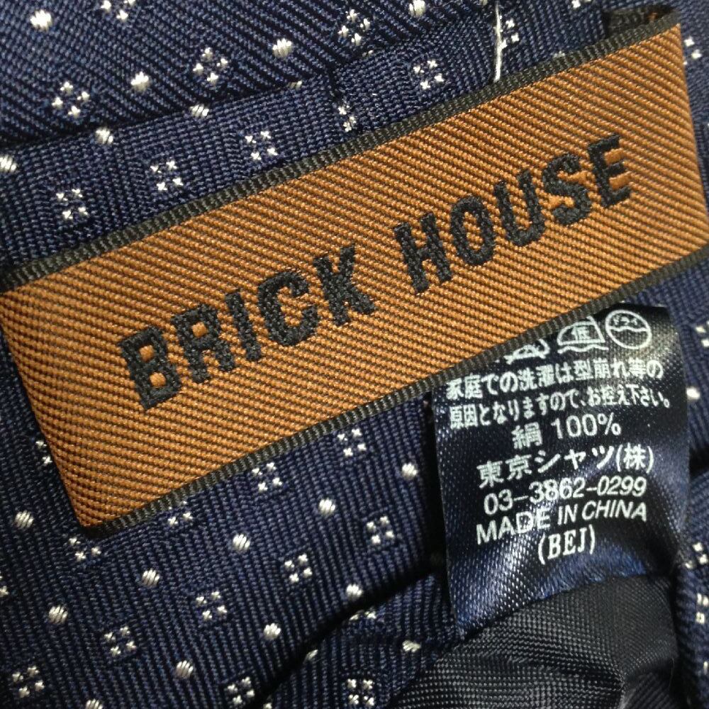 ブリックハウス BRICK HOUSE 微光沢 ネクタイ シルク100% パターン柄 濃紺系 ネイビー系 N-009181