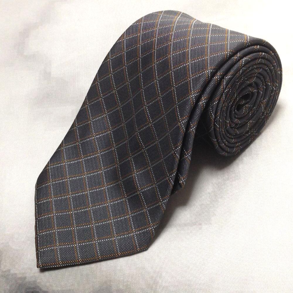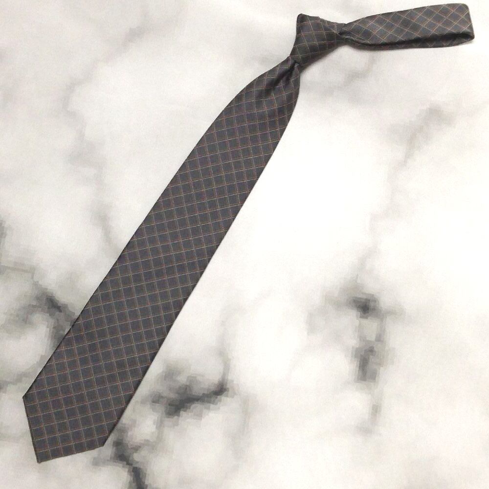 ブリックハウス BRICK HOUSE 美品 未使用品 微光沢 ネクタイ ポリエステル100% 格子柄 グレー系 N-009182