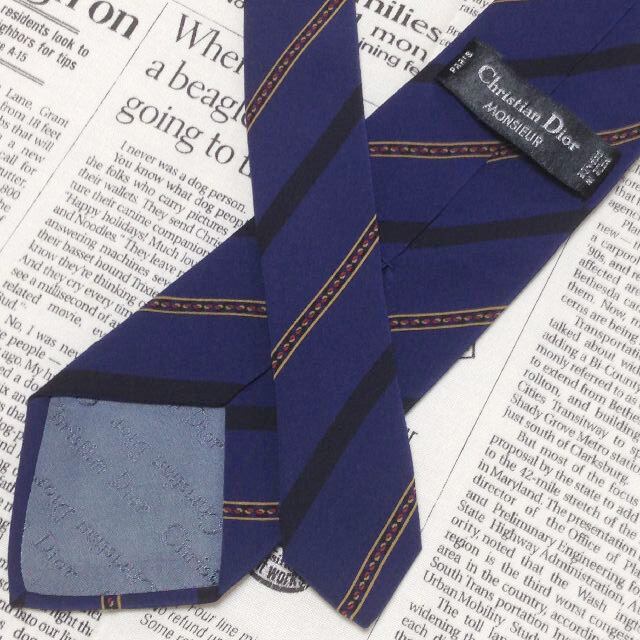 Dior 美品 微光沢 ネクタイ フランス製 シルク100% 斜めストライプ レジメンタル ミックス I-006975