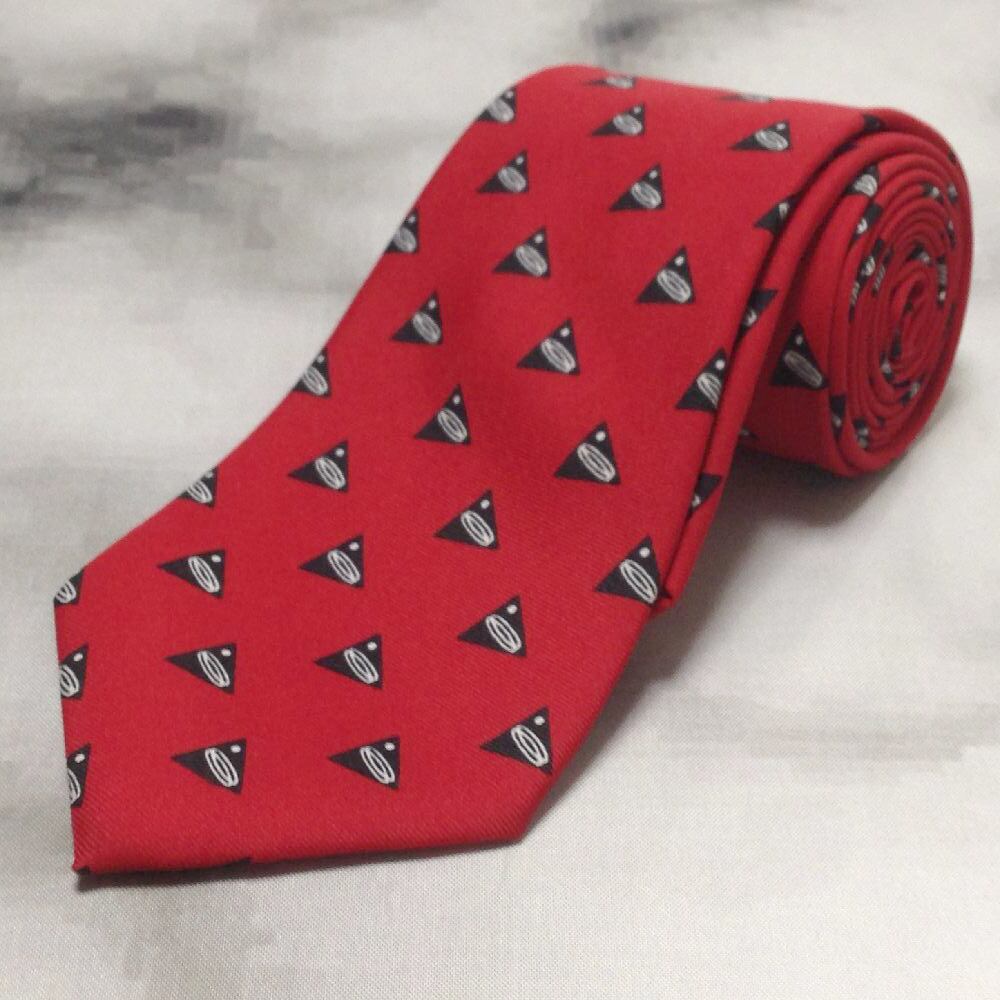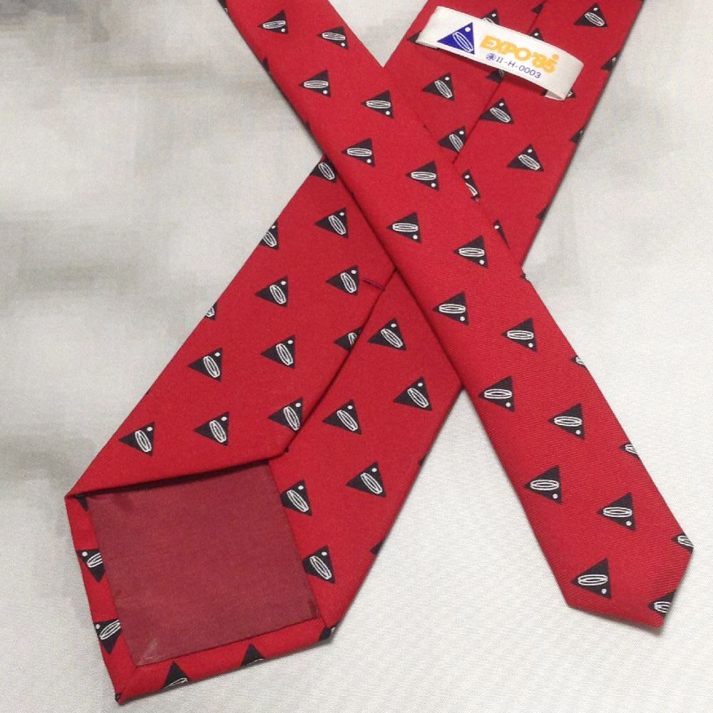 筑波エキスポ EXPO'85 つくば万博 記念 美品 未使用品 微光沢 ネクタイ シンボルマーク柄 レッド系 赤系 O-009193