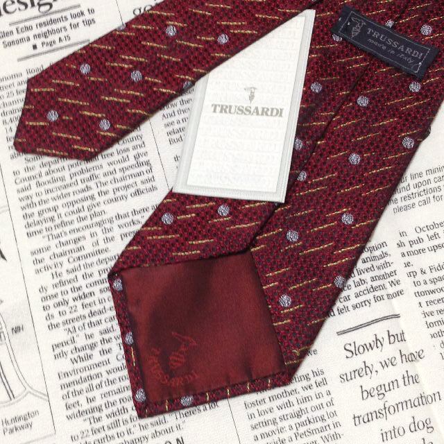 トラサルディ TRUSSARDI 美品 新品未使用タグ付 微光沢 ネクタイ イタリア製 シルク100% パターン柄 ミックス H-006789