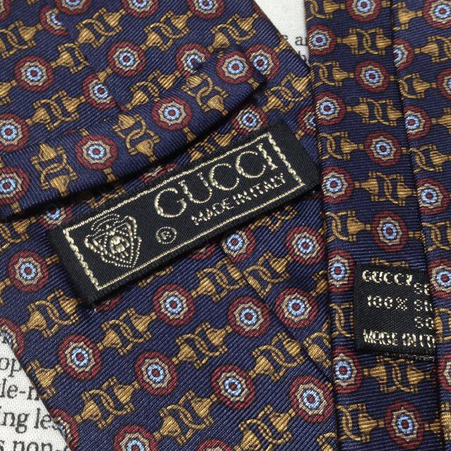 グッチ GUCCI 美品 微光沢 ネクタイ イタリア製 シルク100% パターン柄 ミックス H-006826