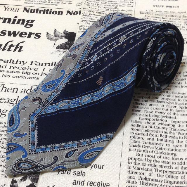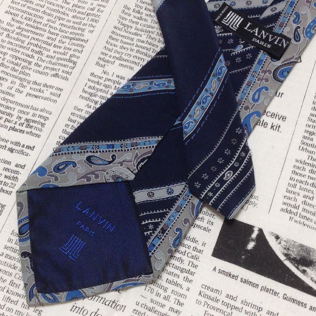 ランバン LANVIN 美品 微光沢 ネクタイ フランス製 シルク100% ペイズリー柄 ミックス H-006837