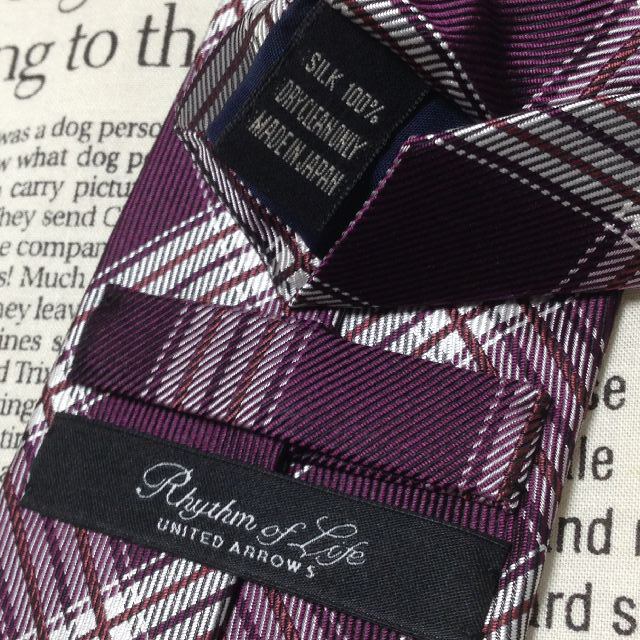 ユナイテッドアローズ UNITED ARROWS リズムオブライフ Rhythm of Life 美品 微光沢 ネクタイ 日本製 シルク100% チェック柄 ミックス H-006847