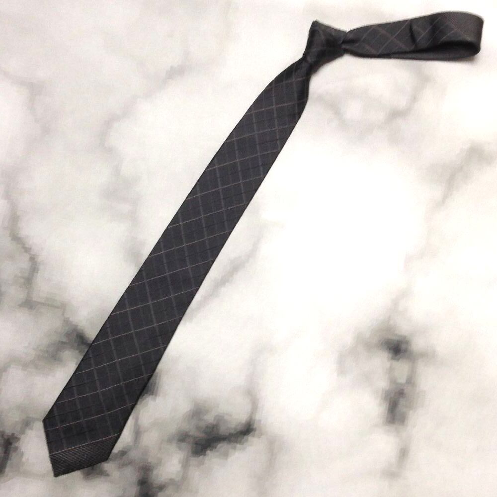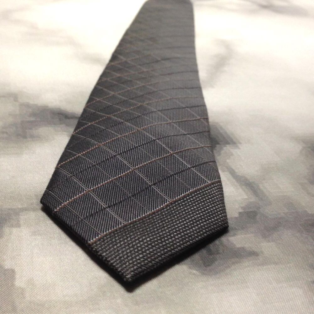 コムサイズム COMME CA ISM 美品 微光沢 ネクタイ シルク100% パターン柄 ダークグレー系 Q-009214