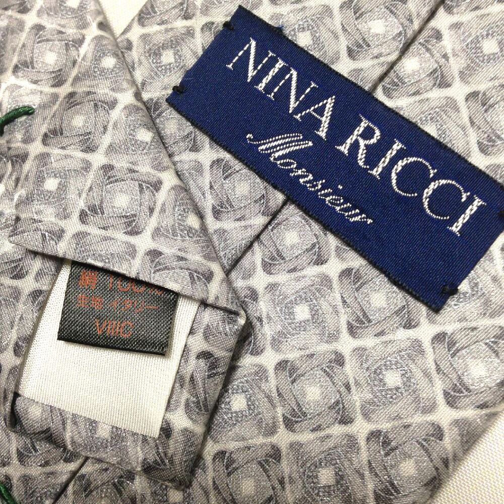 ニナリッチ NINA RICCI 美品 未使用品 微光沢 ネクタイ シルク100% パターン柄 Q-009216