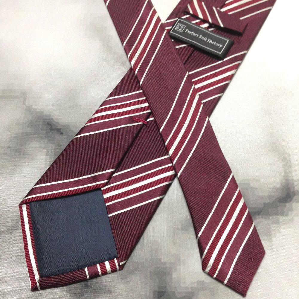 パーフェクトスーツファクトリー PSFA P.S.FA 美品 未使用品 微光沢 ネクタイ ストライプ ワインレッド系 赤系 Q-009219