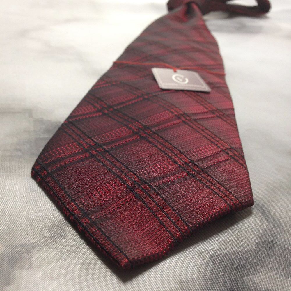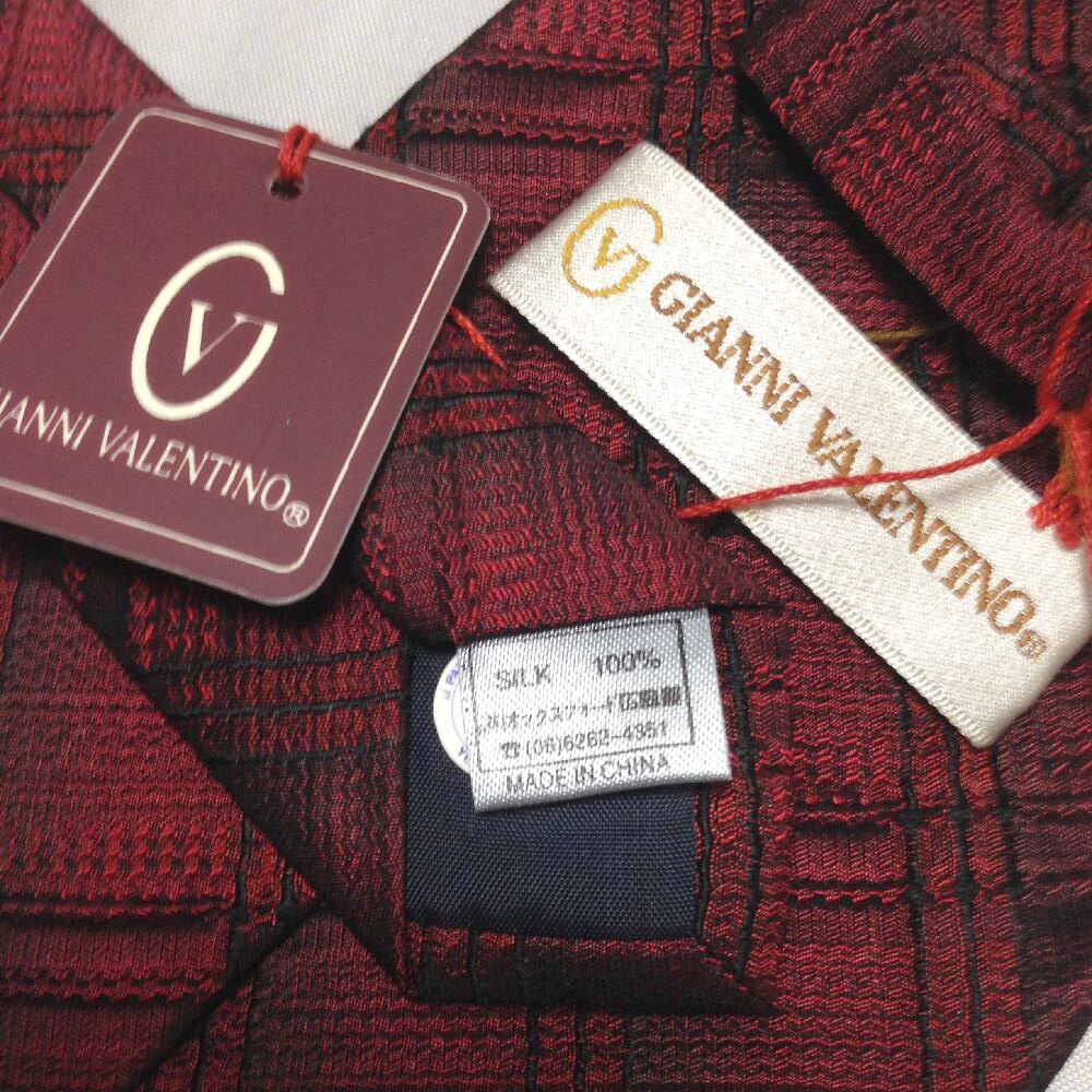 ジャンニ バレンチノ GIANNI VALENTINO 美品 新品未使用タグ付 微光沢 ネクタイ 格子 ワインレッド系 赤系 Q-009220