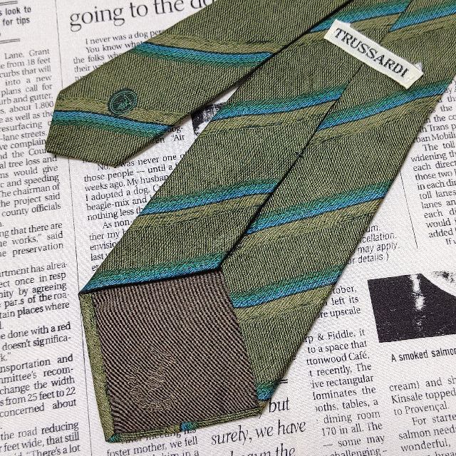 トラサルディ TRUSSARDI 良品 微光沢 ネクタイ イタリア製 シルク100% 斜めストライプ レジメンタル ミックス F-006715