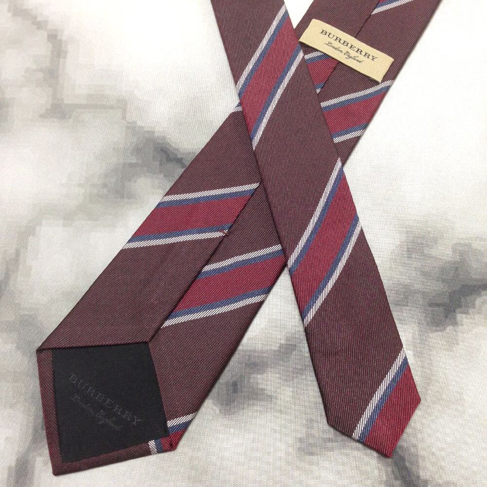 バーバリー Burberry 良品 微光沢 ネクタイ シルク100% 斜めストライプ レジメンタル 茶系 ブラウン系 Q-009226