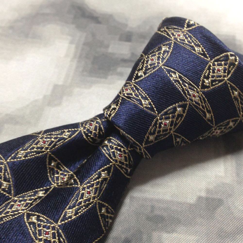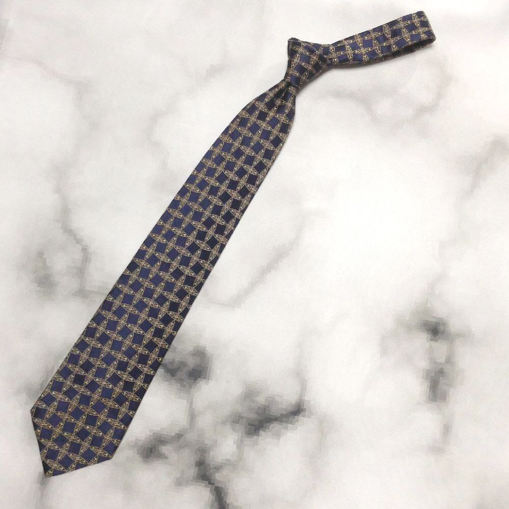シャネル CHANEL 美品 微光沢 ネクタイ イタリア製 シルク100% パターン柄 濃紺系 ネイビー系 Q-009227