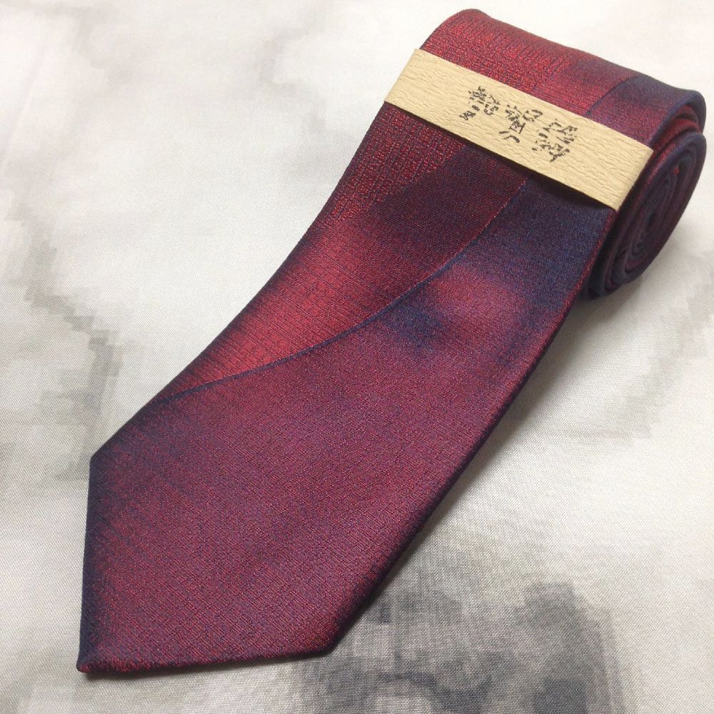 加賀 美品 新品未使用帯タグ付 微光沢 ネクタイ 日本製 ワインレッド系 赤系 Q-009230
