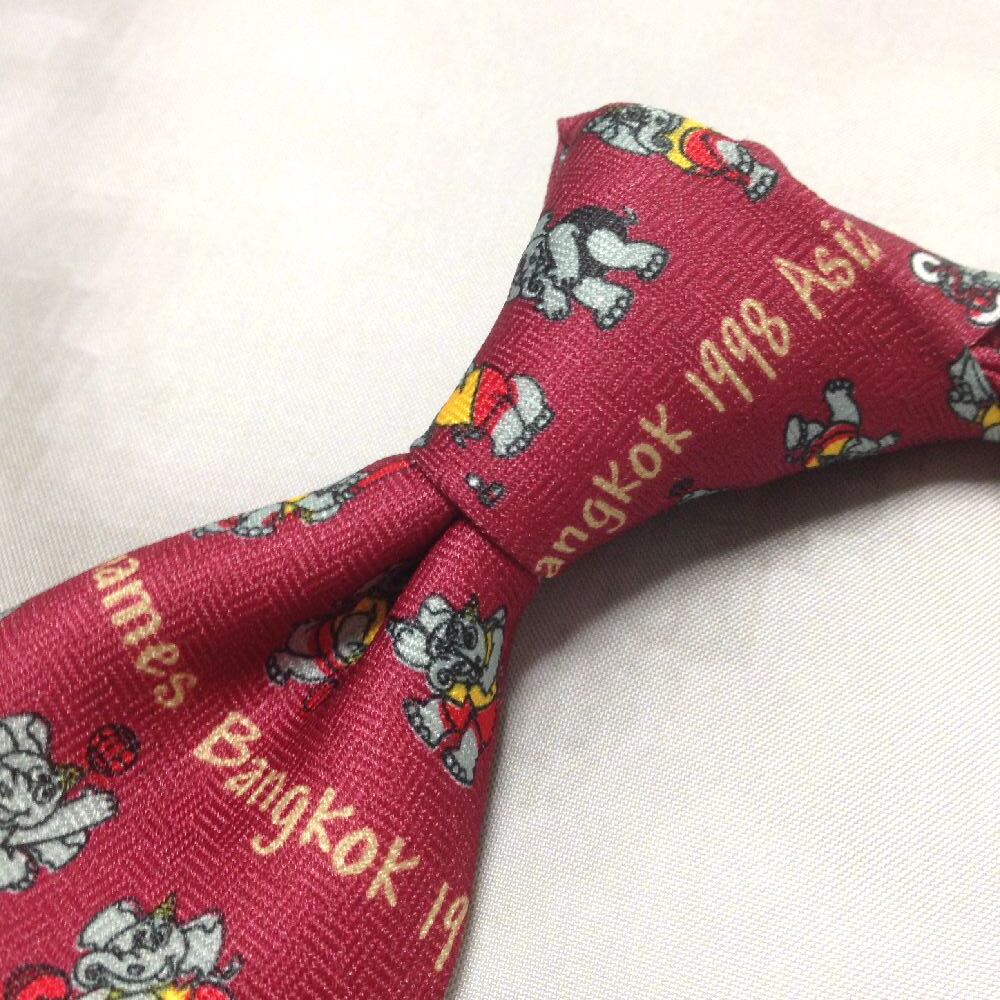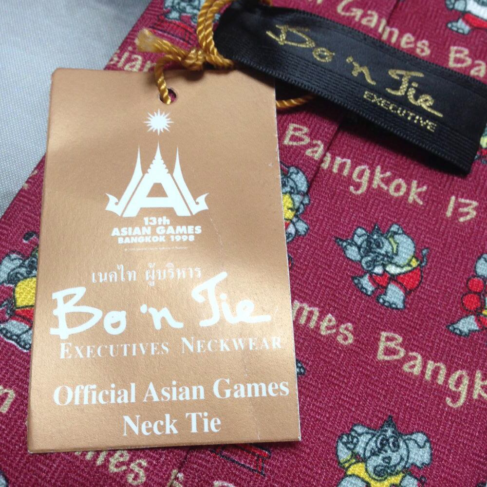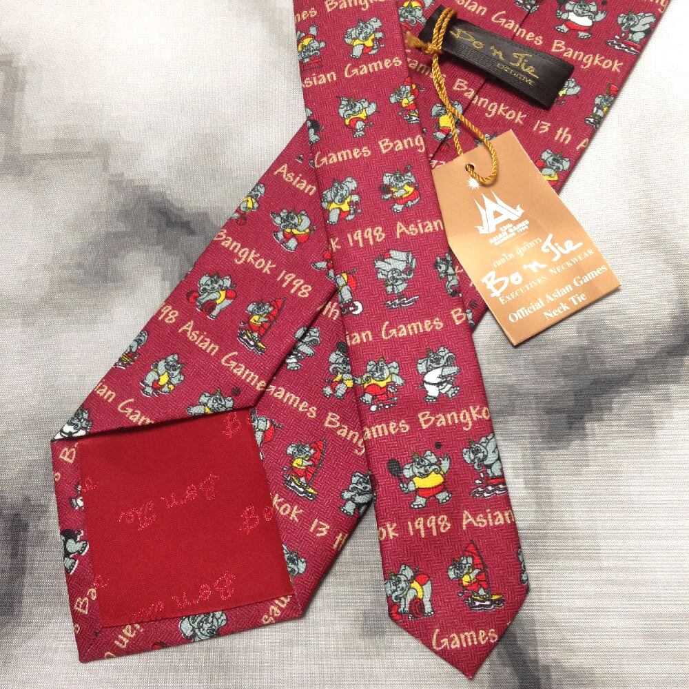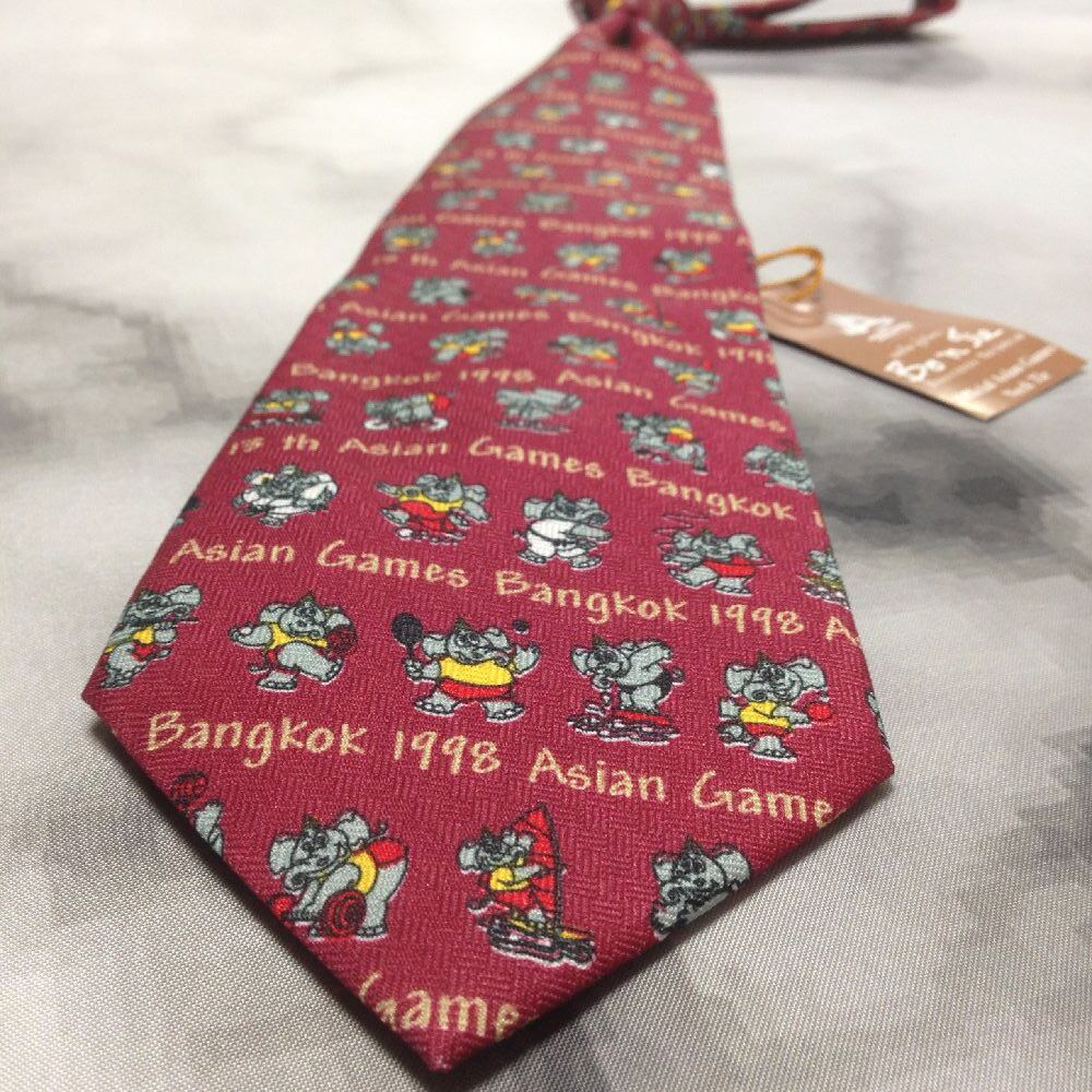 1998年アジア競技大会 13th ASIAN GAMES BANGKOK 1998 新品未使用タグ付 微光沢 ネクタイ マスコット ワインレッド系 Q-009231