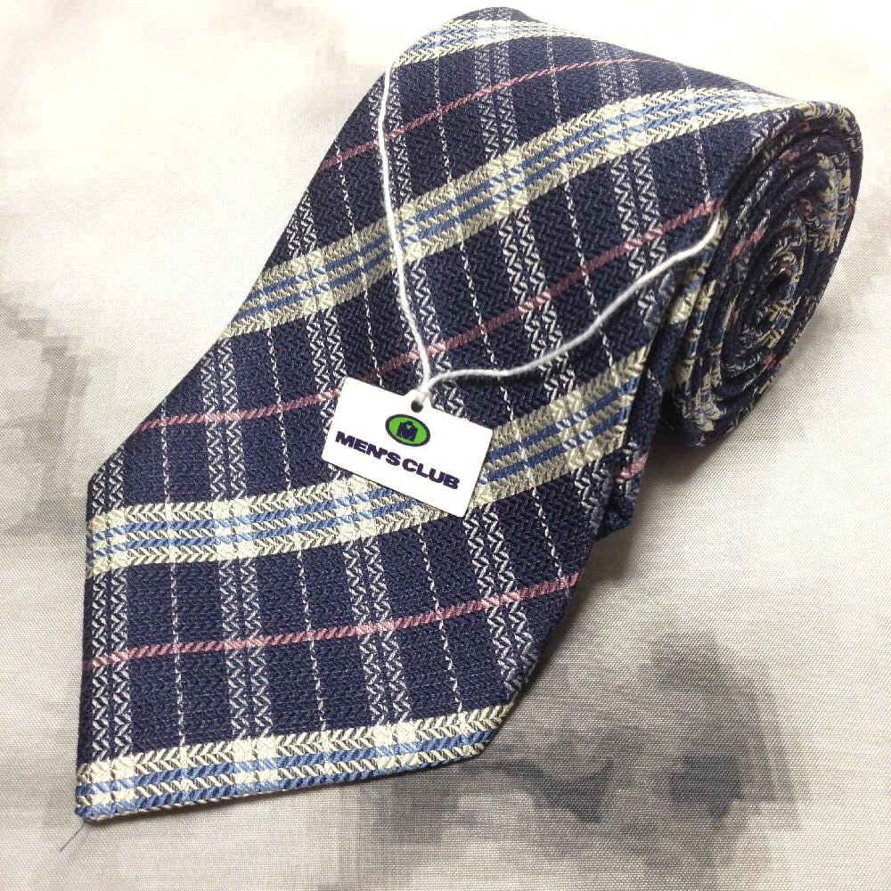 メンズクラブ MEN'S CLUB 美品 新品未使用タグ付 微光沢 ネクタイ チェック柄 濃紺系 ネイビー系 Q-009232