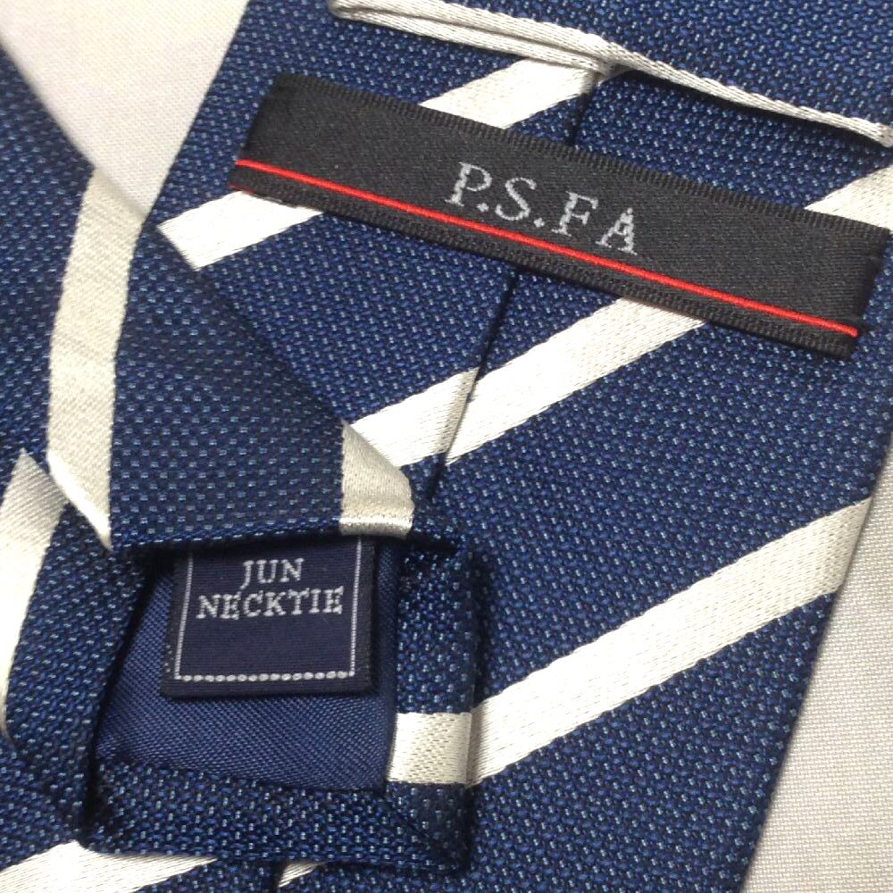パーフェクトスーツファクトリー PSFA P.S.FA 美品 未使用品 微光沢 ネクタイ ストライプ 青系 ブルー系 R-009238