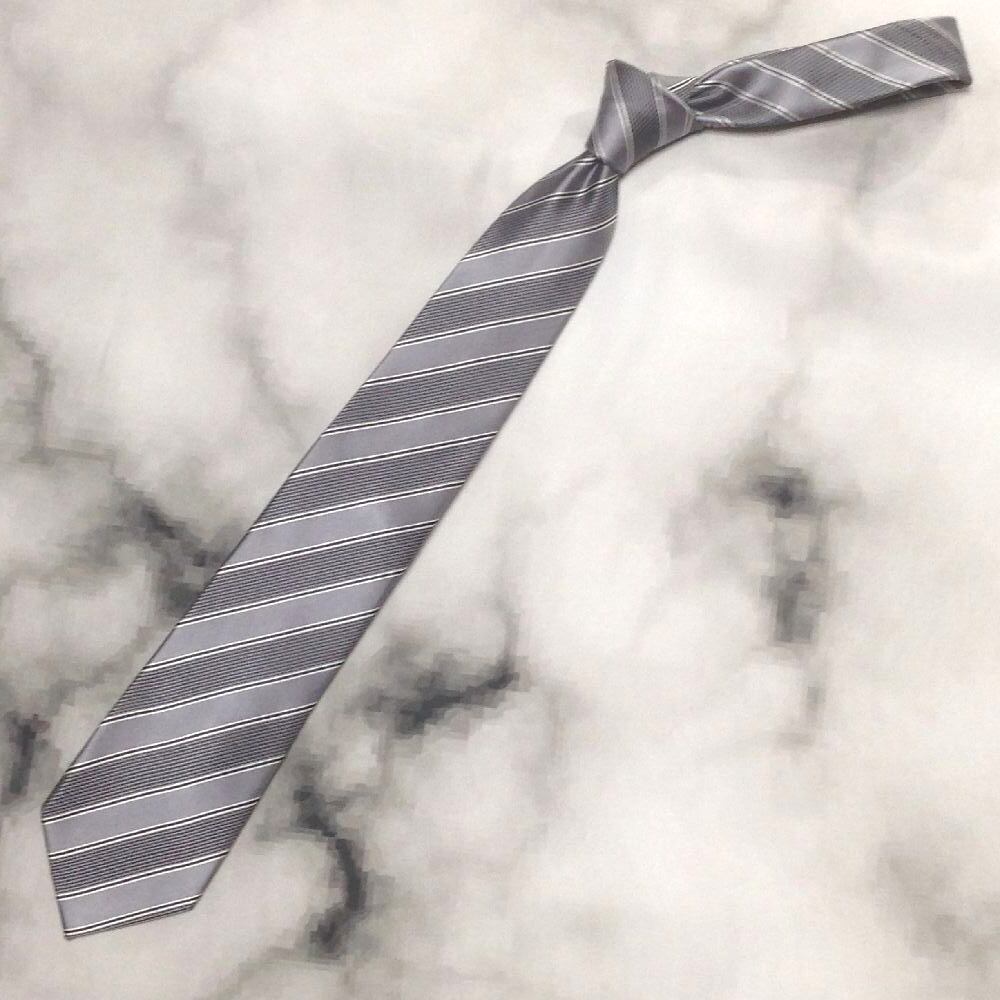 パーフェクトスーツファクトリー PSFA P.S.FA 良品 微光沢 ネクタイ 斜めストライプ シルバー系 グレー系 R-009240