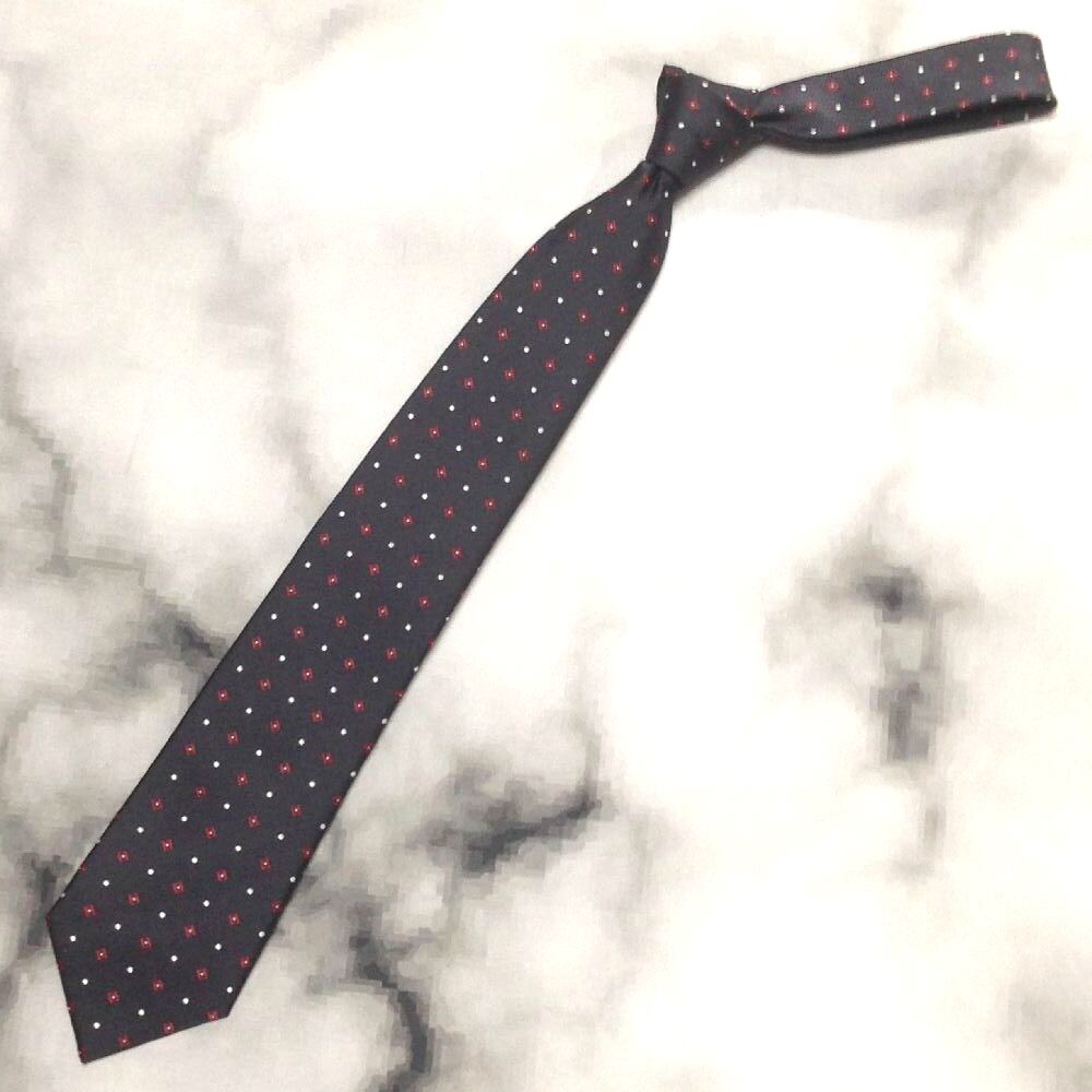 スーツセレクト SUIT SELECT 美品 微光沢 ネクタイ ドット柄 グレー系 R-009242
