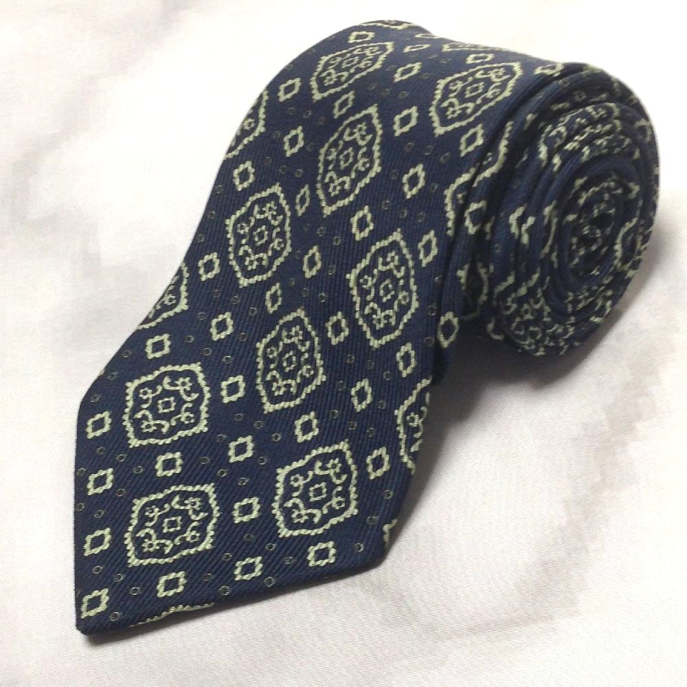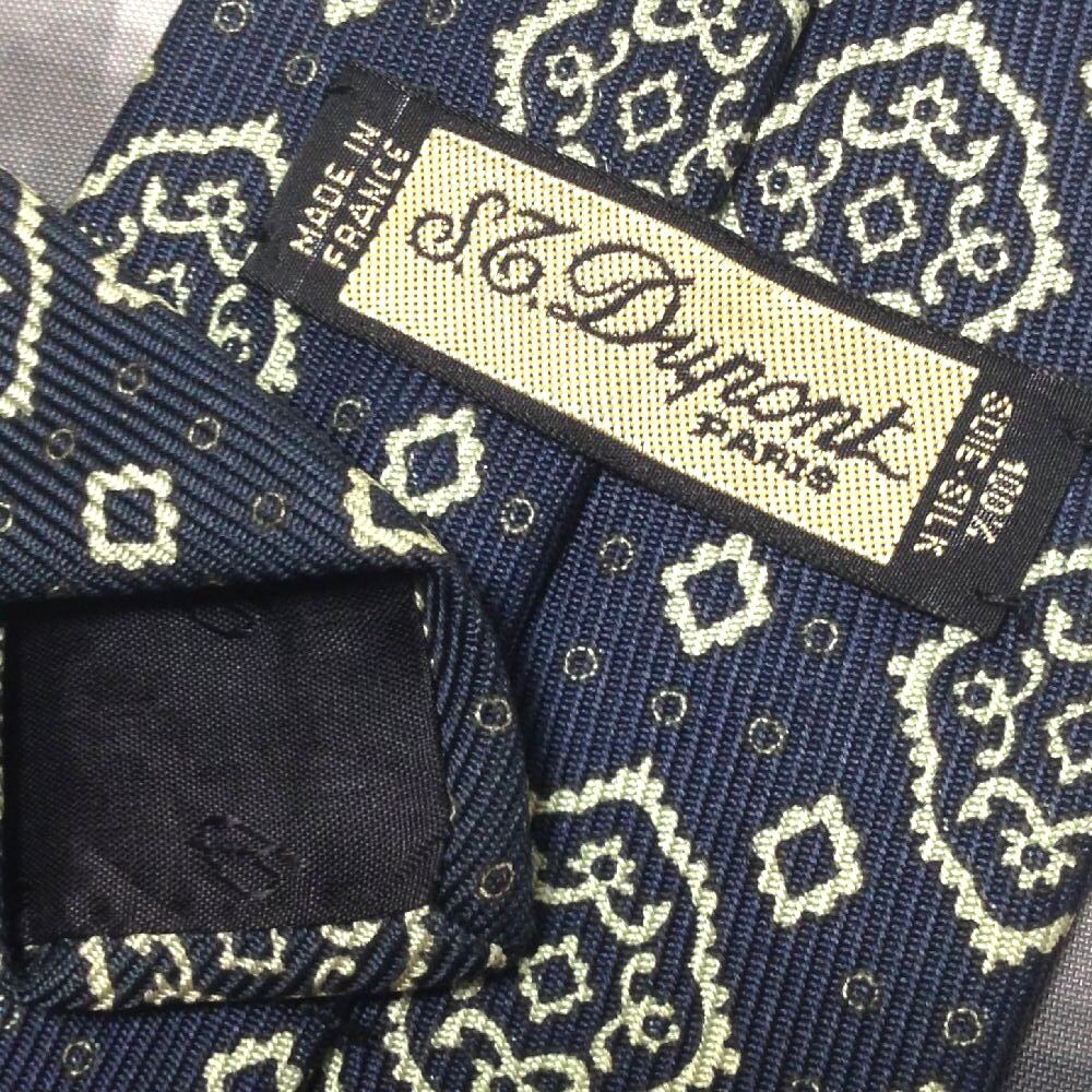 エス・テー・デュポン S.T.Dupont 美品 未使用品 微光沢 ネクタイ シルク100% パターン柄 濃紺系 ネイビー系 S-009248