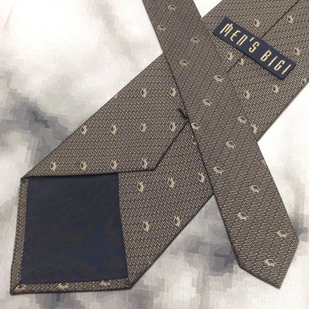 bigi メンズビギ MEN'S BIGI 美品 未使用品 微光沢 ネクタイ シルク100% パターン柄 グレー系 S-009252