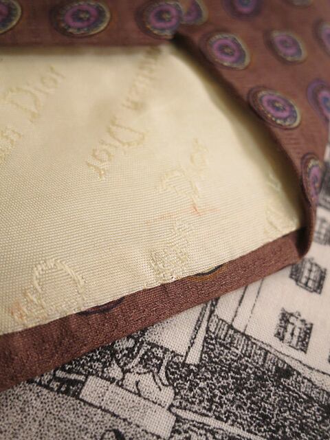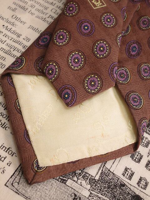 クリスチャンディオール Christian Dior 微光沢 ネクタイ フランス製 シルク100% パターン柄 茶系 ブラウン系 S-005750